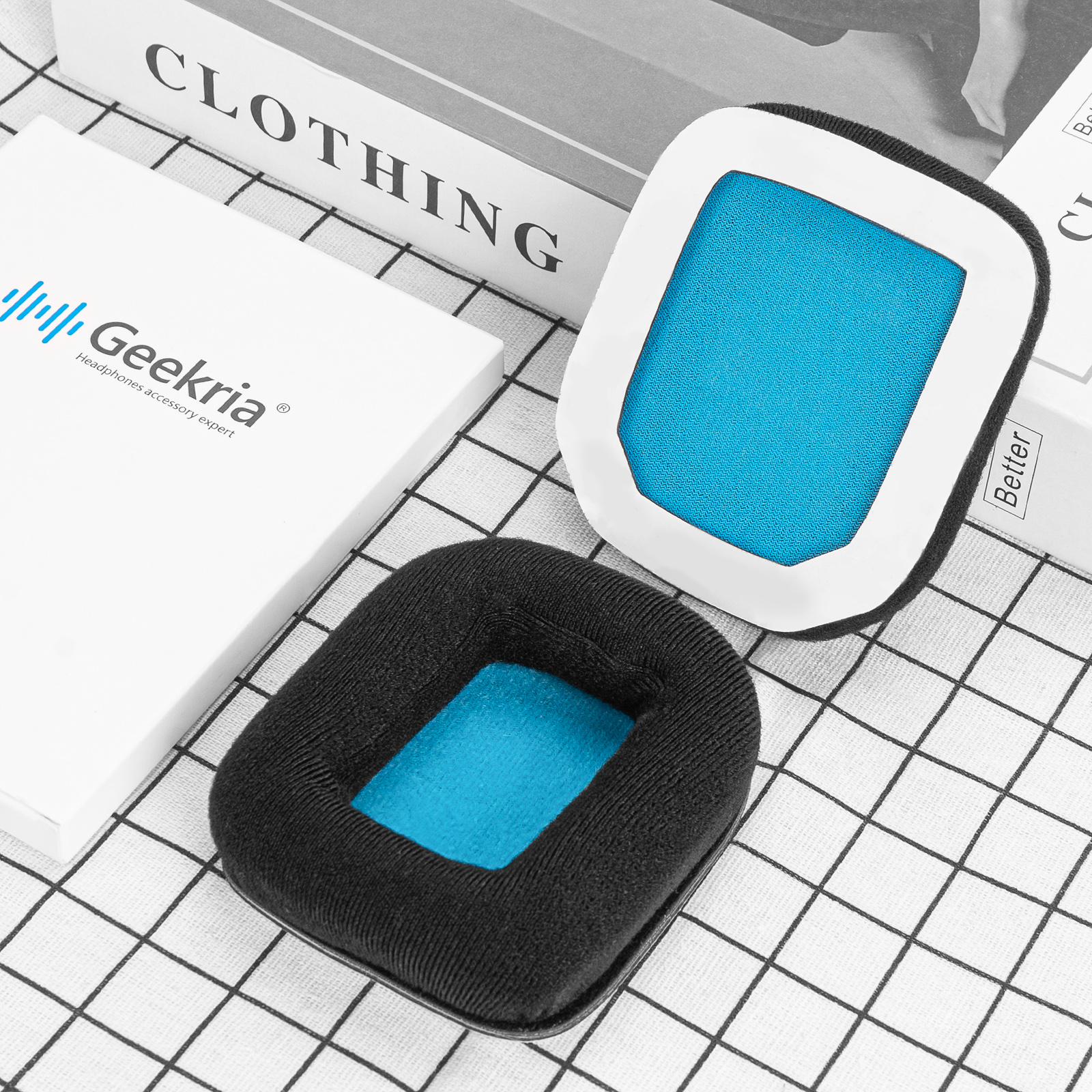 - One set of ear cushions. Made by Geekria.