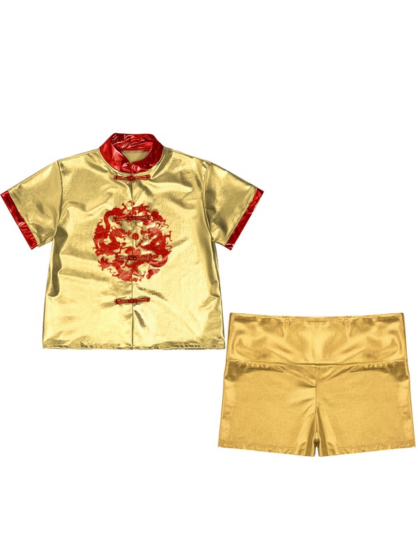 The stand collar short sleeve tops with Chinese traditional knot buttons, easy to put on and take off. Kids will like it as gift.