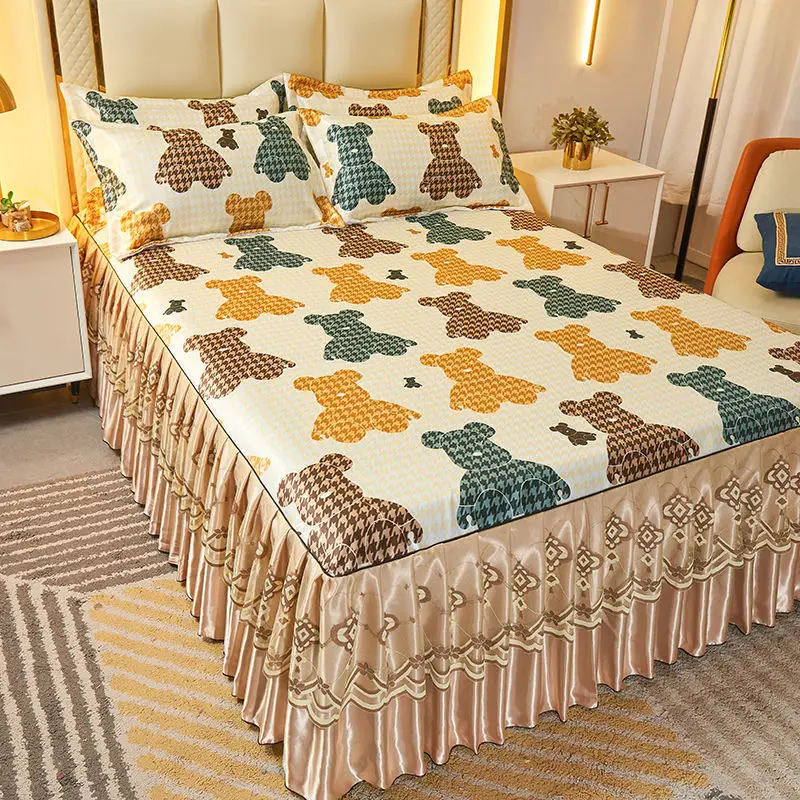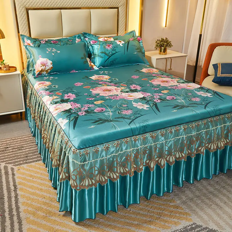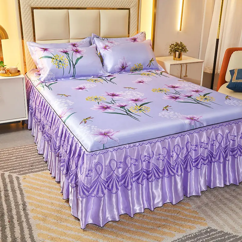 3 Pcs 150x200cm:1 piece bed Skirt 150x200cm and 2 pieces pillowcases