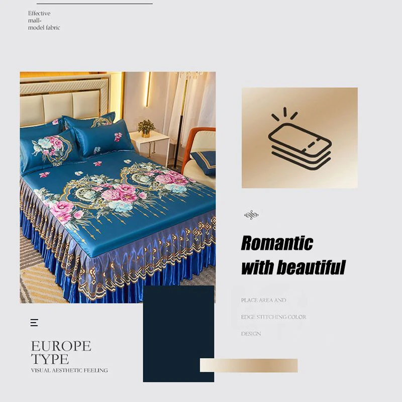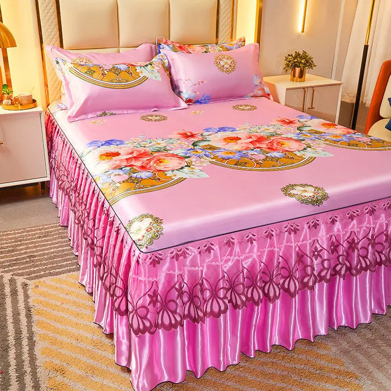 3 Pcs 180x220cm:1 piece bed Skirt 180x220cm and 2 pieces pillowcases