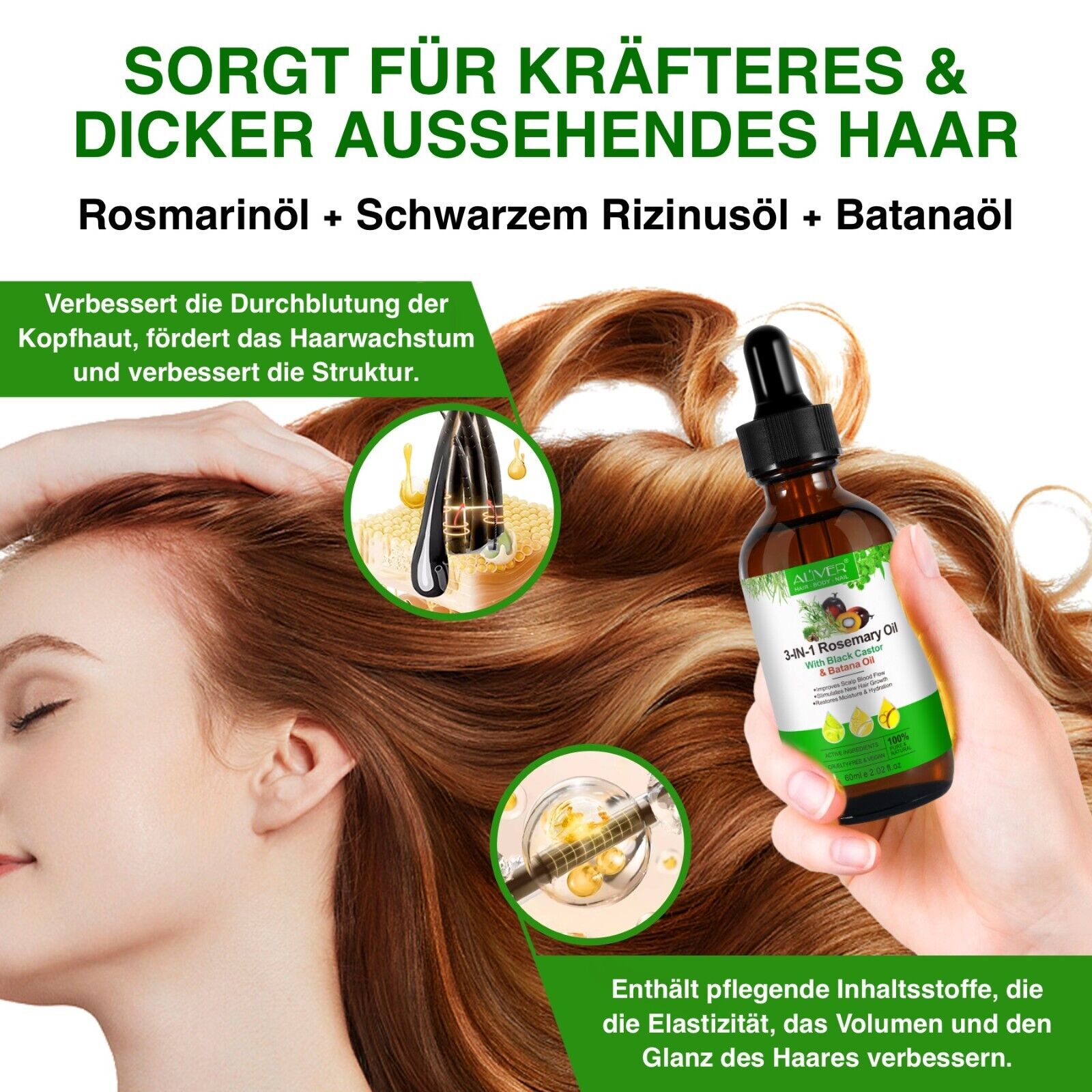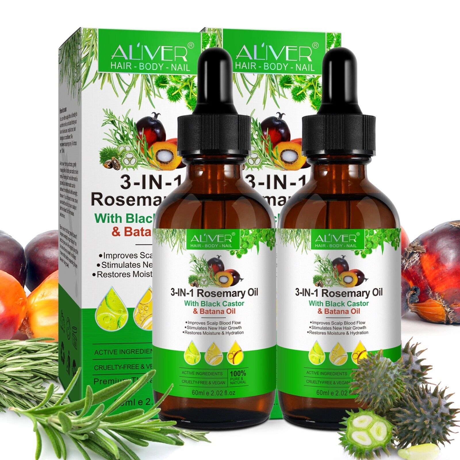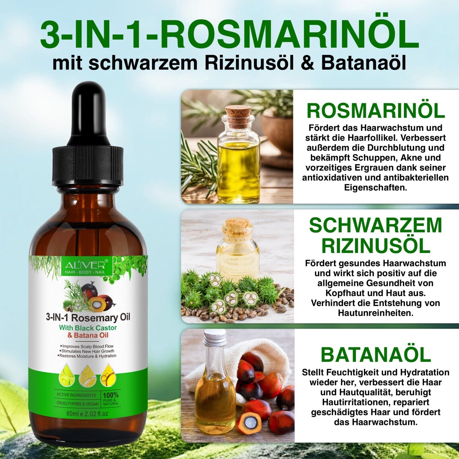 3-in-1-Rosmarinöl mit schwarzem Rizinusöl und Batanaöl 60 ml