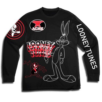 Looney Tunes Mens Long Sleeve T-Shirt- Front and Back Print Sizes S-3XL Black