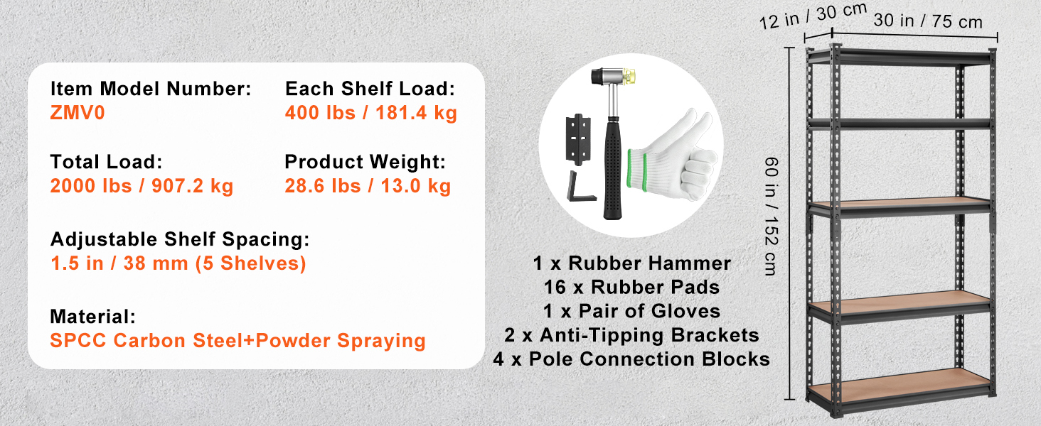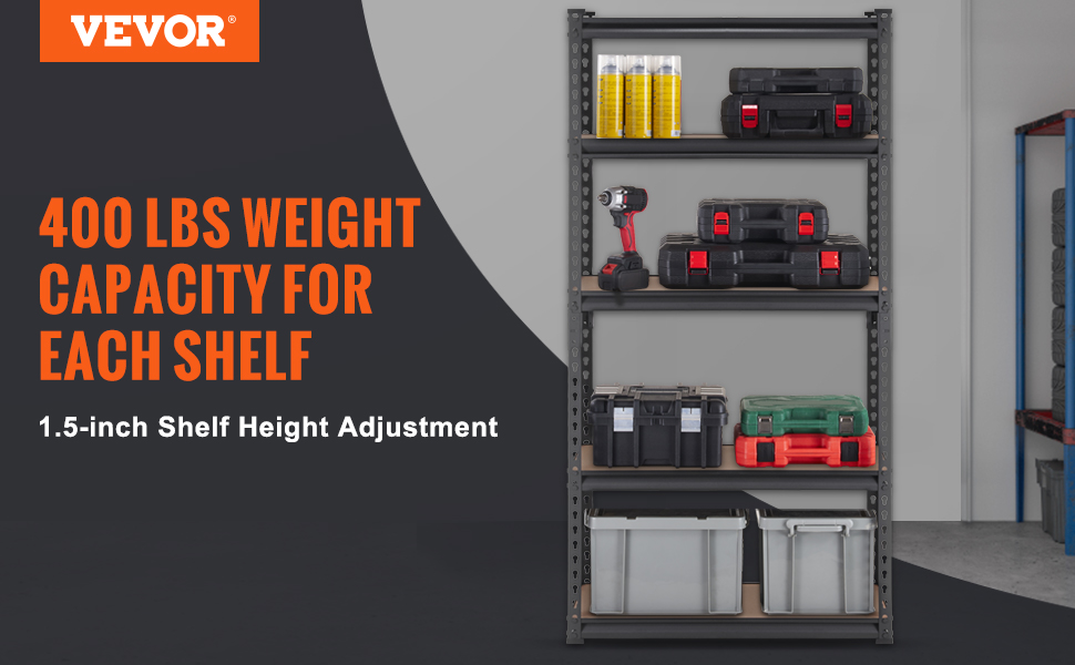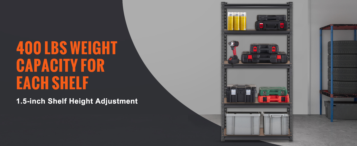 Load Up Your Life: Transform your cluttered garage into a neat and organized space with our storage shelving unit. With a 2000 lbs total load capacity, you're free to pile on tools, supplies, or whatever you need in your garage or warehouse. Remember, each shelf is a sturdy 400 lbs carrying companion!