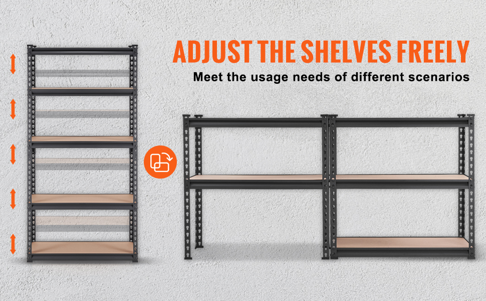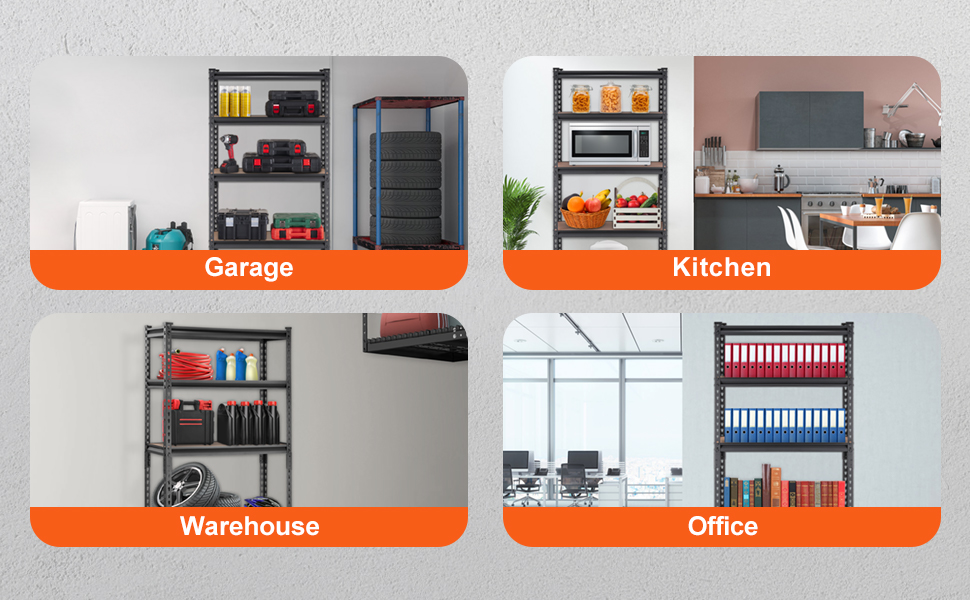 Adjustable Shelf Height: Our heavy duty storage shelves are as flexible as your plans. Need to adjust the height? Just slide, decide, and clip it in place. Whether it’s for the garage, kitchen, or pantry, this metal storage rack plays by your rules.