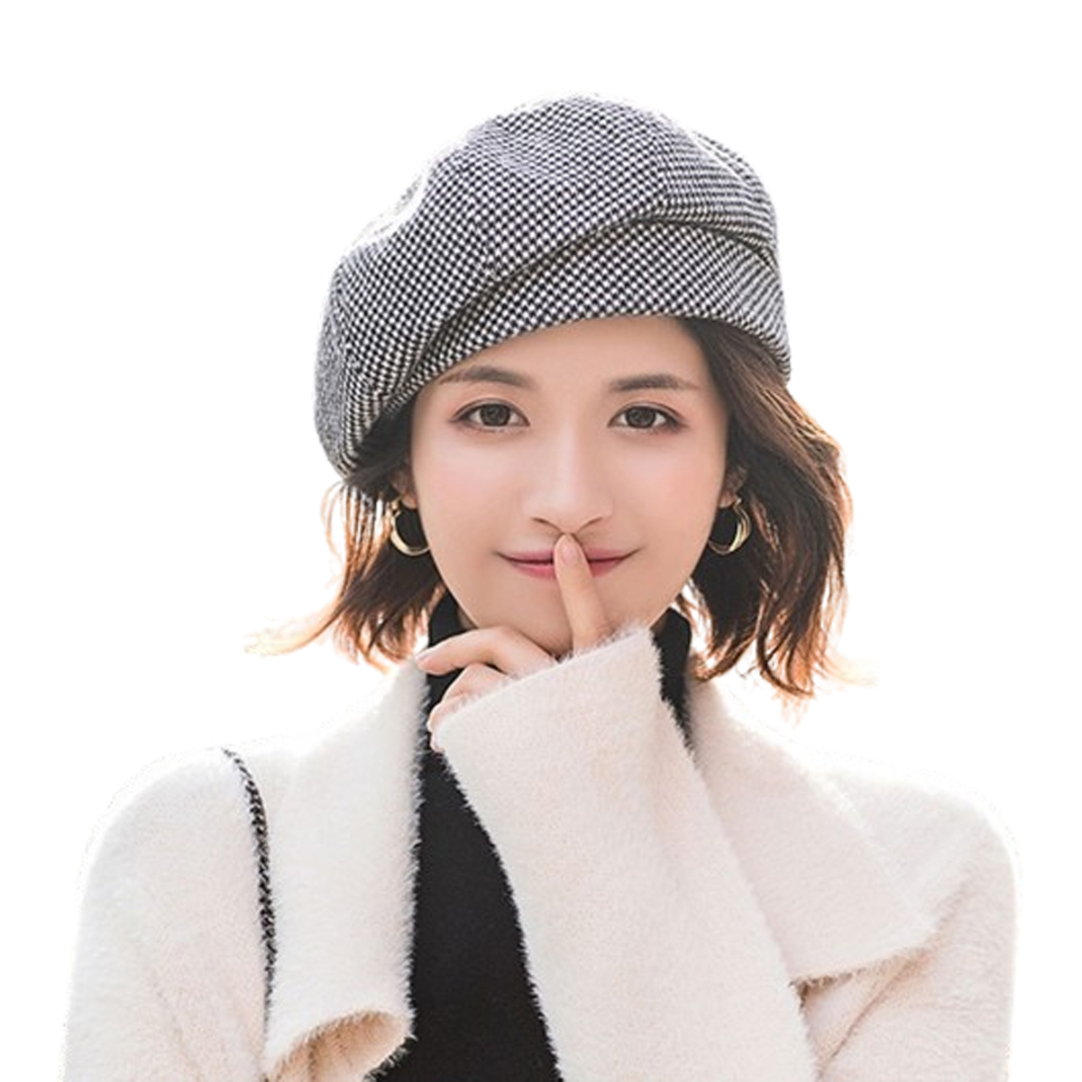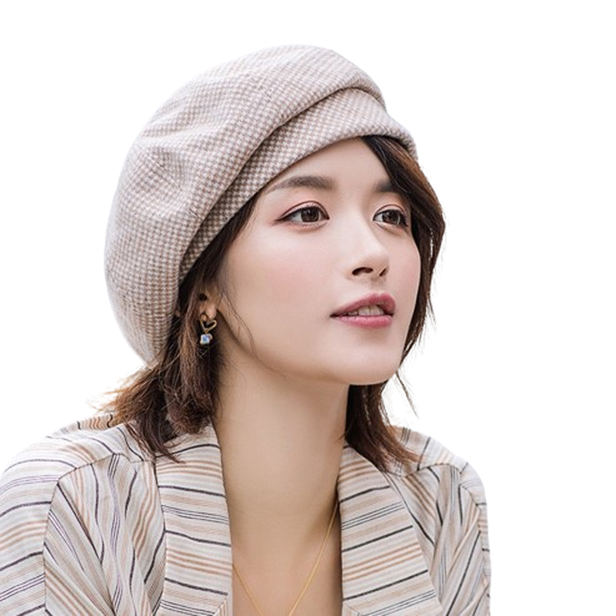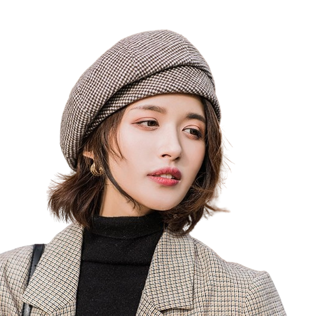 Women Winter Autumn Warm Check Pattern French Artist Round Beret hat Cap Beanie