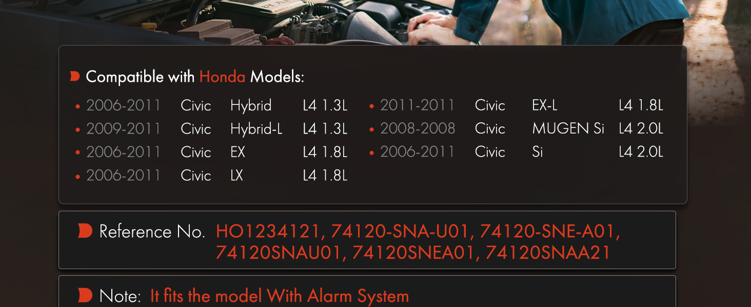 Front Hood Latch Lock for Honda Civic 2006-2011 Sedan Coupe with Alarm System