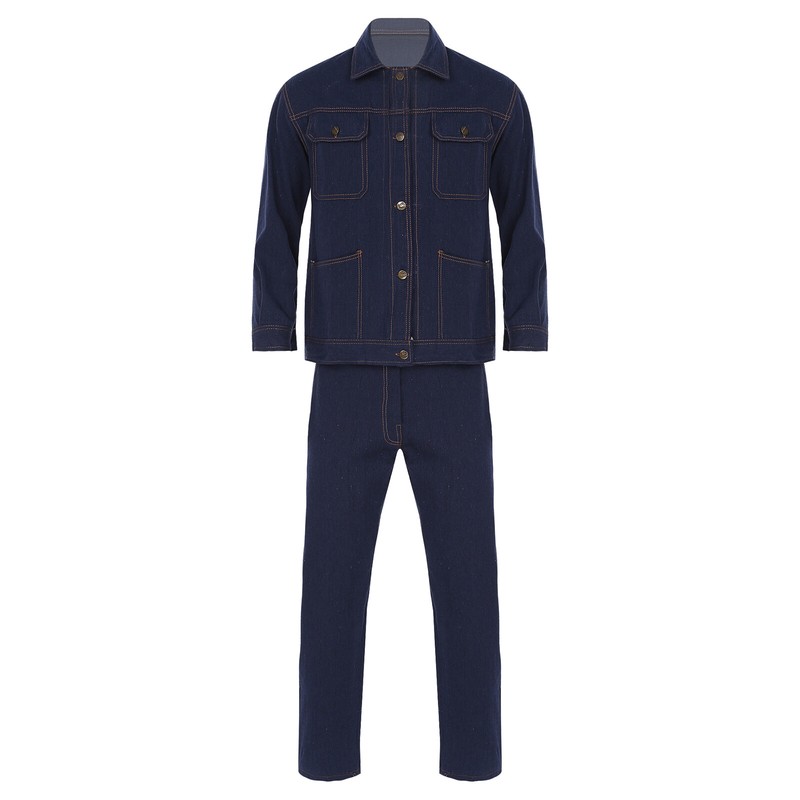 The denim suit is strong and durable enough to handle daily wear and tear in the workshop or the job site