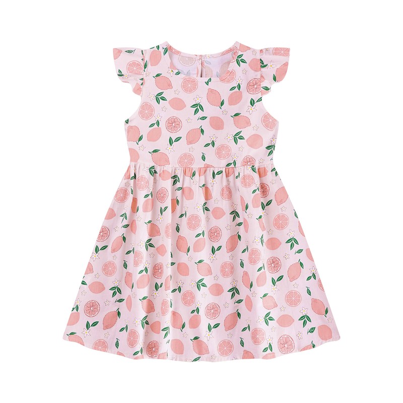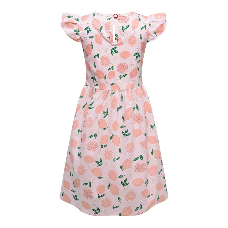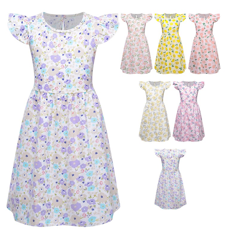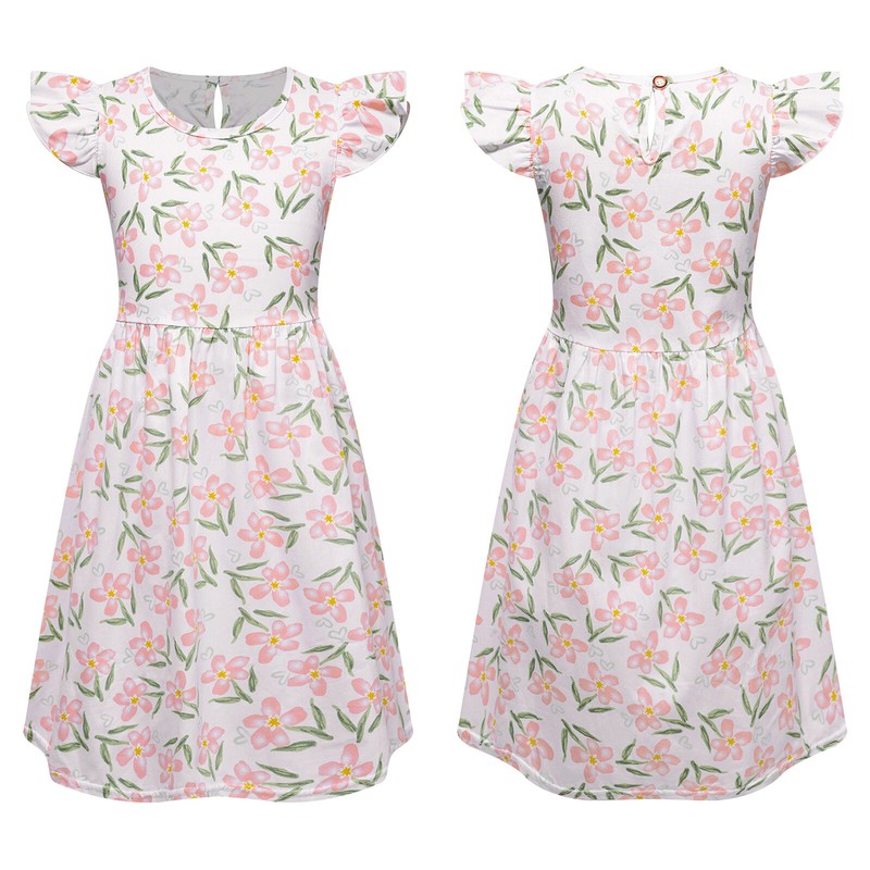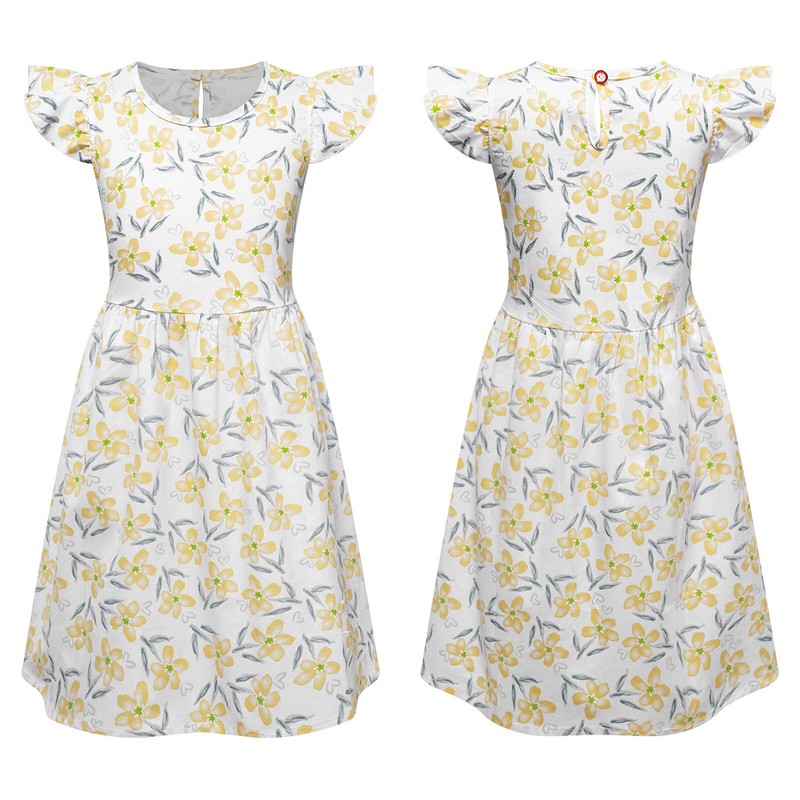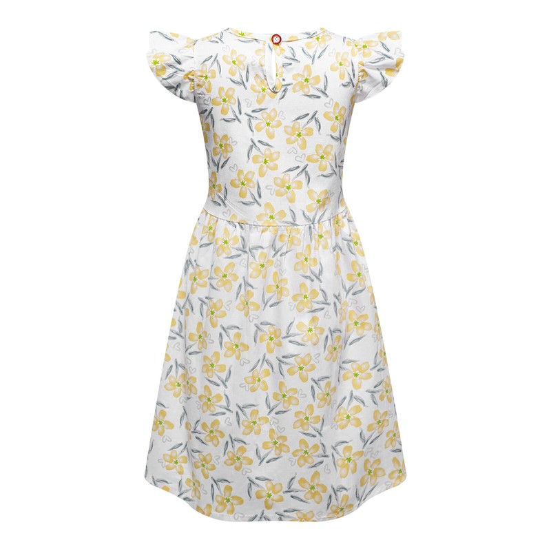 Cap sleeve dress with floral print and ruffled details make your girl look cute and energetic.