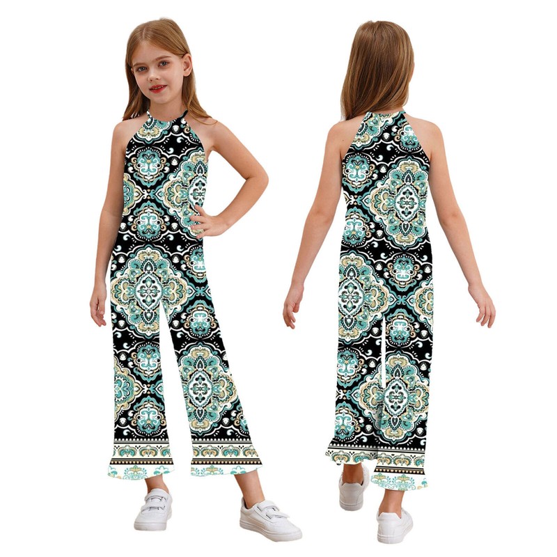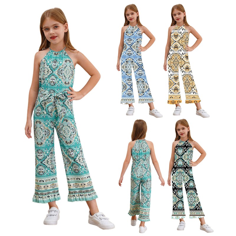 Girl’s sleeveless jumpsuit with floral print and ruffled hem, make your girl cute and eye-catching in the crowd.