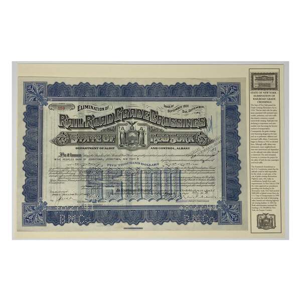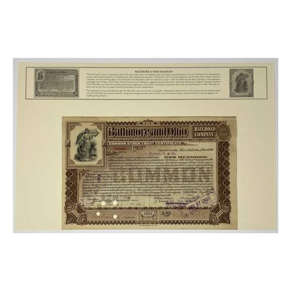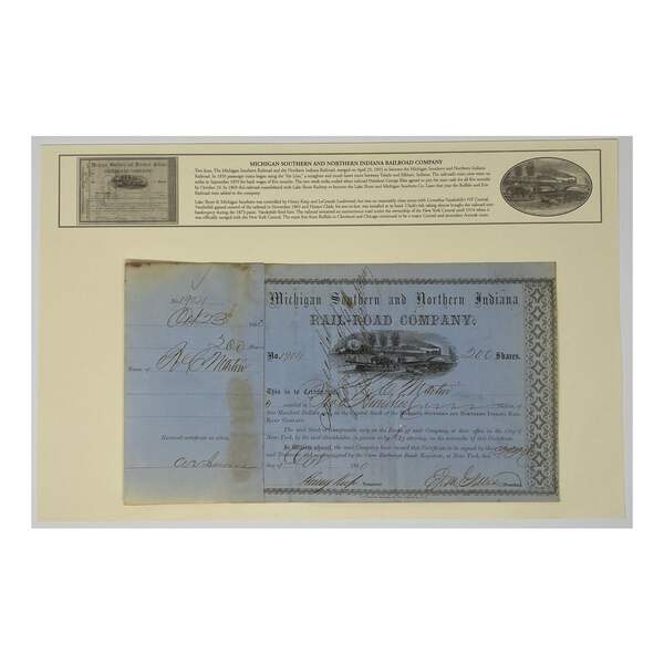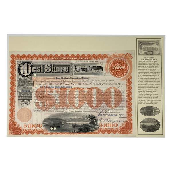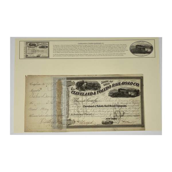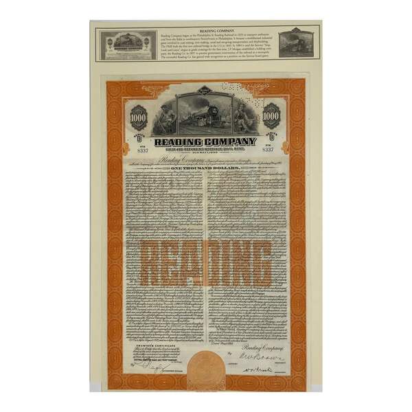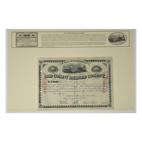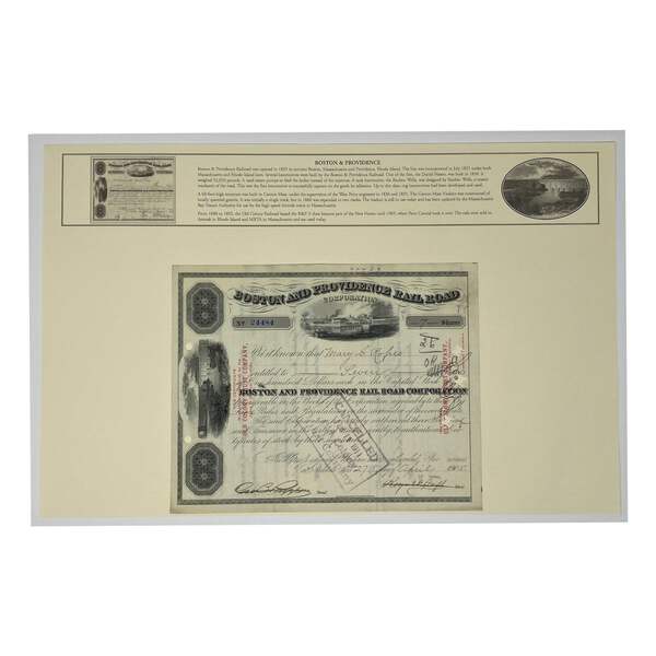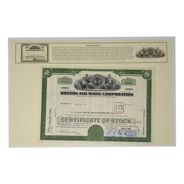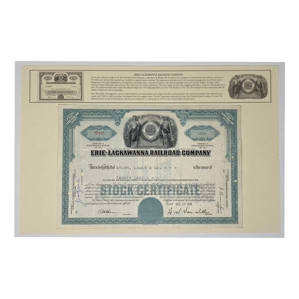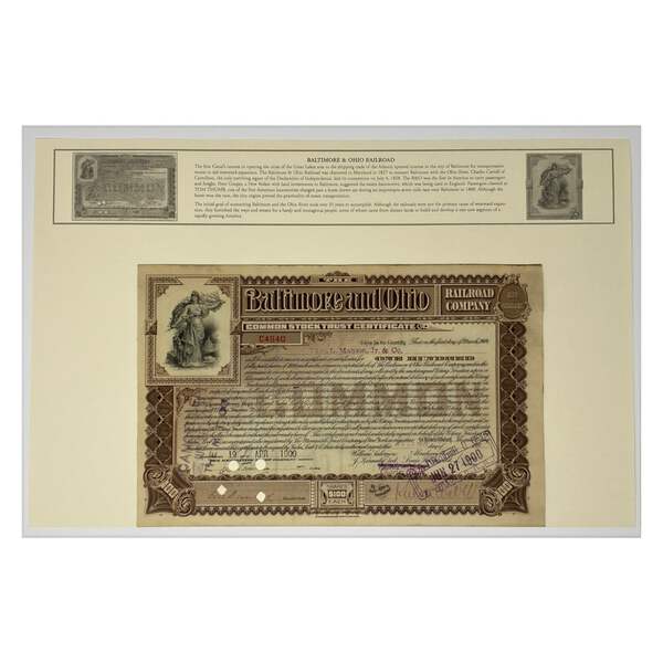 Product Description: This is an exceptional collection of 25 stock and bond certificates from great American railroads houséd in a professional quality display album, complete with printed information about each historic company. This deluxe presentation set makes for a great coffee table piece and conversation starter while also protecting your collection. All certificates date from the 1920’s to the 1970’s, with most from the 1950’s to 1970’s. Consider pairing with the presentation set of 25 Great American Corporations. Railroad companies included: Allegheny & Western, Baltimore & Ohio, Boston & Albany, Boston & Maine, Boston & Providence, Cleveland & Toledo, Delaware, Lackawanna & Western, Erie Railroad, Erie-Lackawanna, Lehigh Valley, Michigan Southern & Northern Indiana, Missouri Pacific, New York Central, New York, Lackawanna & Western, New York Elimination of Rail Road Grade Crossings, Old Colony, Penn Central, Pennsylvania Railroad, Pittsburgh & West Virginia, Providence & Worcester, Reading, Seatrain Lines, Union Pacific, West Shore Railroad, and Westinghouse Air Brake. Stock and Bond Certificates Explained A stock certificate is a physical piece of paper representing ownership in a company. Stock certificates include information such as the shareholder name, number of shares owned, date issued, an identification number, and usually a corporate seal and signatures. Unlike a stock, a bond is a fixed income instrument that represents a loan made by an investor to a borrower, typically a government or corporation, to finance projects and operations. A bond certificate includes the loan terms, bond holder, principal due date, schedule of interest payments, and usually a corporate seal and signatures. Many vintage bond certificates also include attached interest payment coupons, which needed to be physically cut off the bond and redeemed for each interest payment. Certificates are Historic Works of Art Throughout history, companies competed to produce the most impressive stock and bond certificates, with brilliant colors, intricate designs, and beautiful vignettes. However, with the rise of the internet and online brokerage firms in the 1990s, the need for physical certificates disappeared. One by one, companies quietly discontinued issuance of their paper stocks and bonds. A newsworthy example was Walt Disney's decision in 2013 to phase out their colorful stock certificates featuring renditions of their beloved animated characters. The eventual demise of the stock certificate ends a tradition that extends back at least 400 years, when the Dutch East Indies Company became the first company to issue certificates. Today, the beautiful stock and bond certificates that remain are enduring relics from a bygone era in American financial history. Quality and Authenticity is Guaranteed The expert staff of Olevian Numismatic Rarities unconditionally guarantees the authenticity of every historic document we sell, and all signatures contained therein. A certificate of authenticity will be included with each item. Your purchase will match the quality of the product shown but may vary slightly due to the original nature of historical documents.