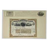 They may be stamped and/or punched cancelled and are no longer negotiable. Light creases, pinholes, and occasional handwriting may also be present. Shop with confidence and discover why people choose Olevian Numismatic Rarities when it matters most. Packaging: The stocks will be houséd in 1 softcover, archival quality display album. The certificates are NOT affixed to the album and can be freely removed. Size: Stocks are roughly 10 x 8 inches. Bonds are roughly 15 x 11 inches. The display album is 11 x 17 inches.