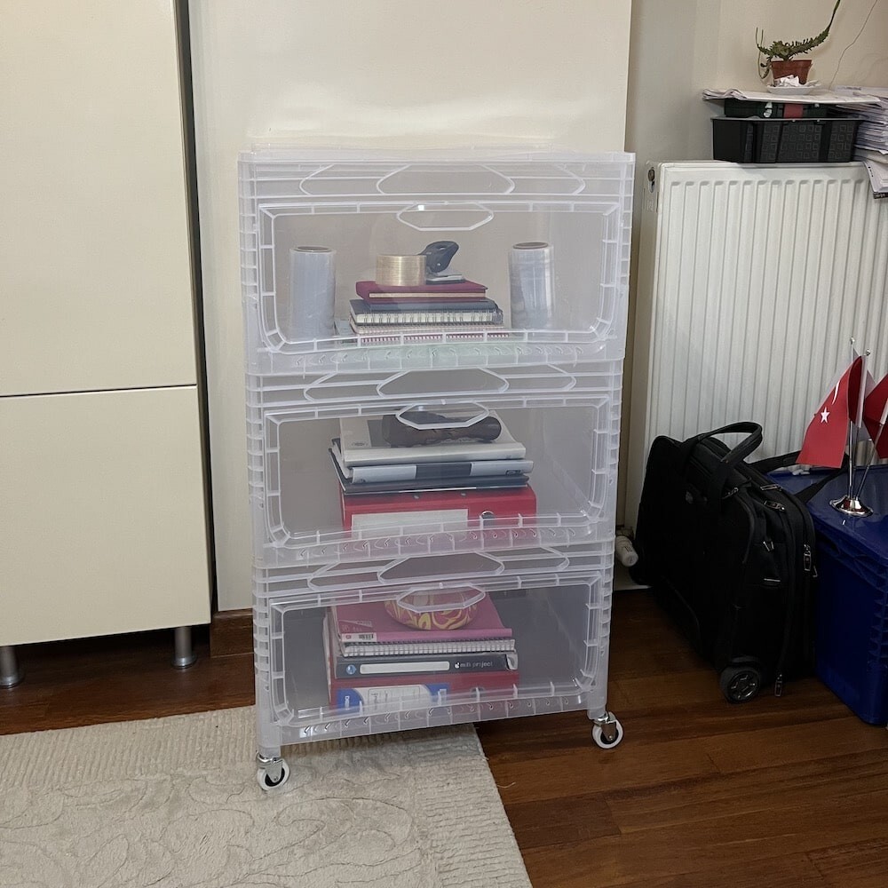 - Clear boxes make identification of contents simple