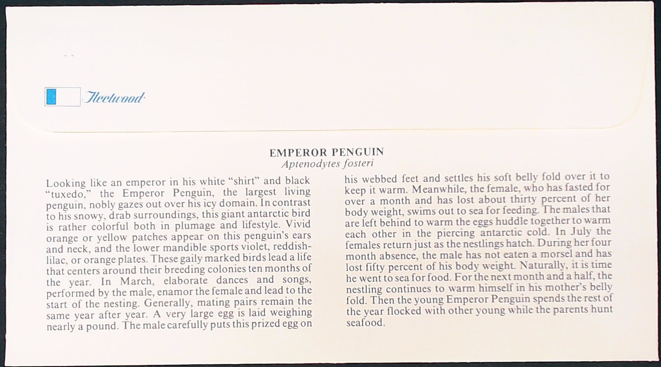 2. **Emperor Penguins (4 Kopecks)** - Illustrates an Emperor Penguin with its chick, highlighting their iconic presence and parental care.