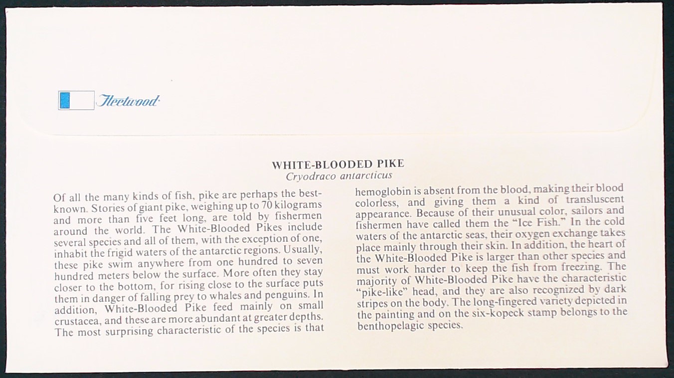 3. **Antarctic Toothfish (6 Kopecks)** - Depicts the unique Antarctic Toothfish, adapted to the extreme cold of the Southern Ocean.