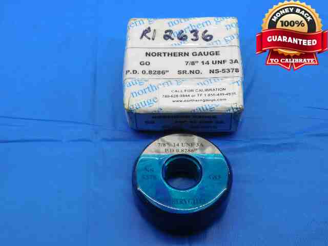 7/8 14 UNF 3A SOLID THREAD RING GAGE .875 .8750 GO ONLY P.D. = .8286 INSPECTION