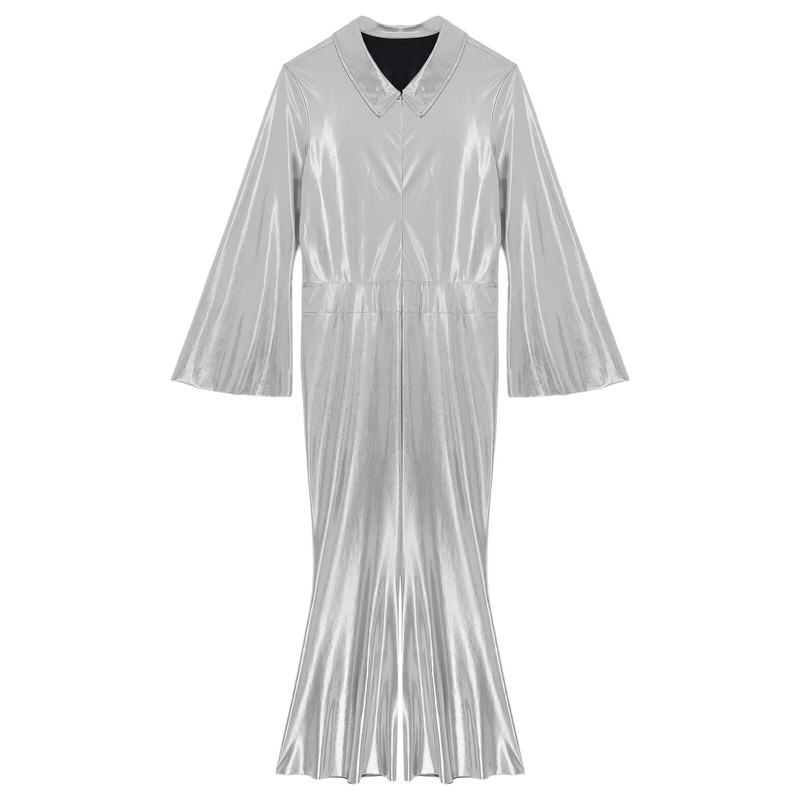 Metallic shiny surface brings unique luster to create a chic and stunning party look. Front zip-up design is convenient to put on and take off.