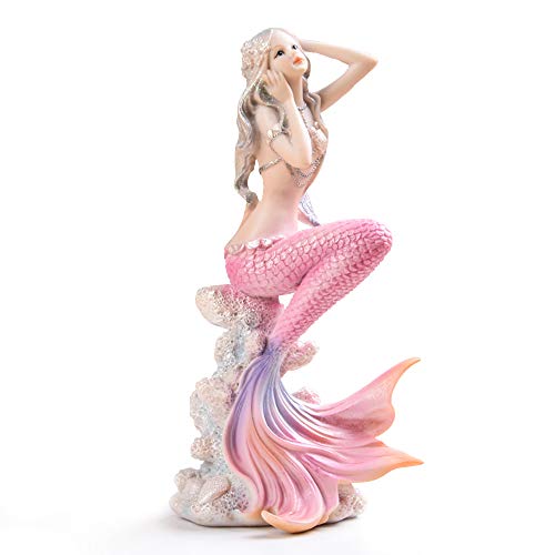 Pink Mermaid Figurines 7.28" Resin Mermaid Sculpture Mediterranean Princess Ornaments Home Office Desktop Bookshelf Mermaid Collectible Figurines Crafts Fish Tank Aquarium Decoration