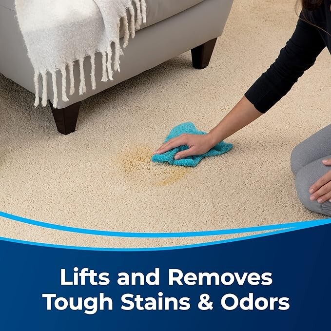 - Lifts and removes tough stains & odors from carpet & upholstery