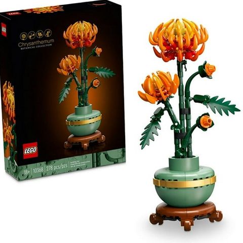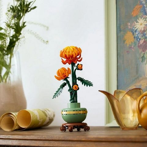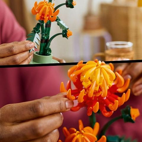 Take time out with the LEGO Icons Chrysanthemum flower décor building set (10368). The chrysanthemum is a popular motif in traditional art and represents fall as part of the classic quartet of beautiful plants known as the Four Gentlemen. Indulge in a mindful building project or treat a loved one to this timeless floral display for home décor or office décor. A perfect gift for teens and adults for any occasion. This detailed replica, with posable leaves and petals, captures the vivid orange flower in bud, blooming and in full bloom and comes with a pastel green flowerpot decorated with a golden band and set on a wood effect plinth.