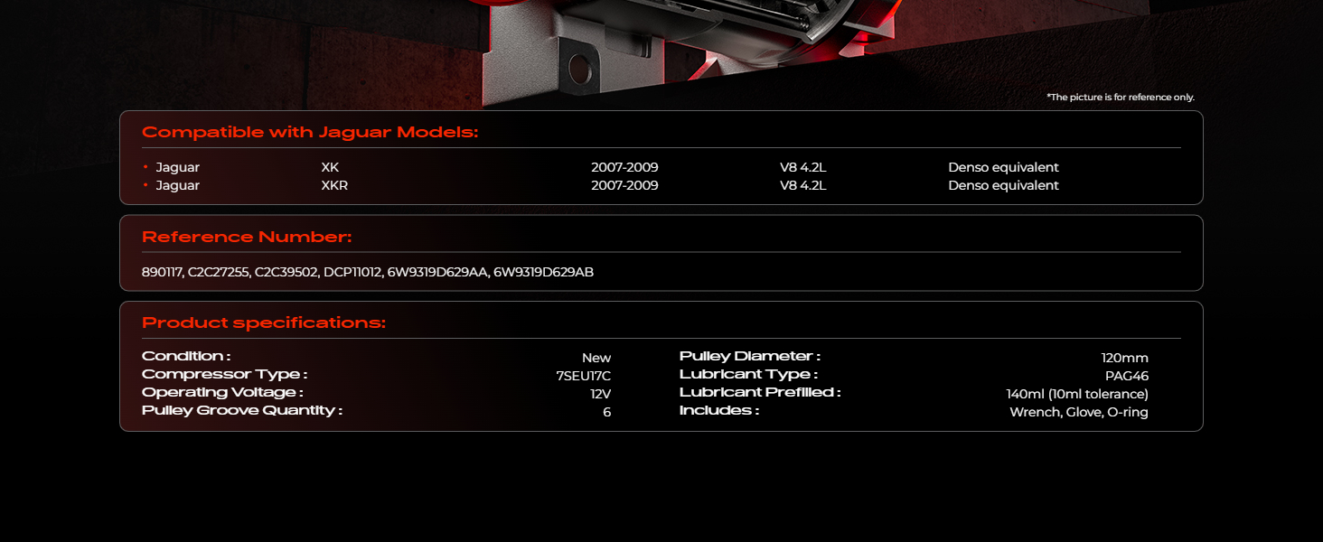 A-Premium A/C Compressor with Clutch for Jaguar XK XKR 2007-2009 V8 4.2L 7SEU17C