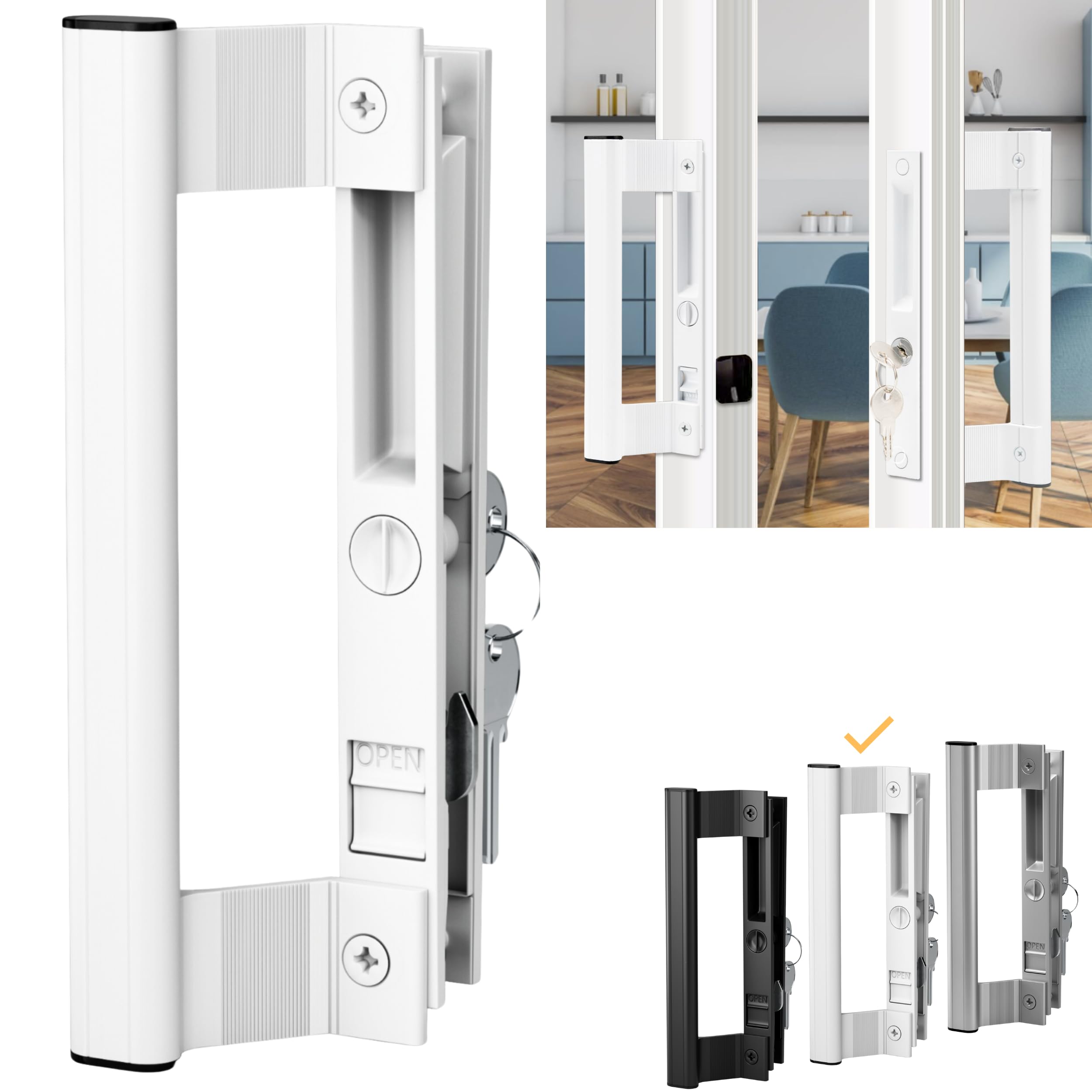 Sliding Glass Door Handle Set with Lock – Aluminum Handle, Fits 6-5/8 in. Hole Spacing (White)