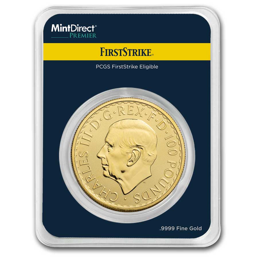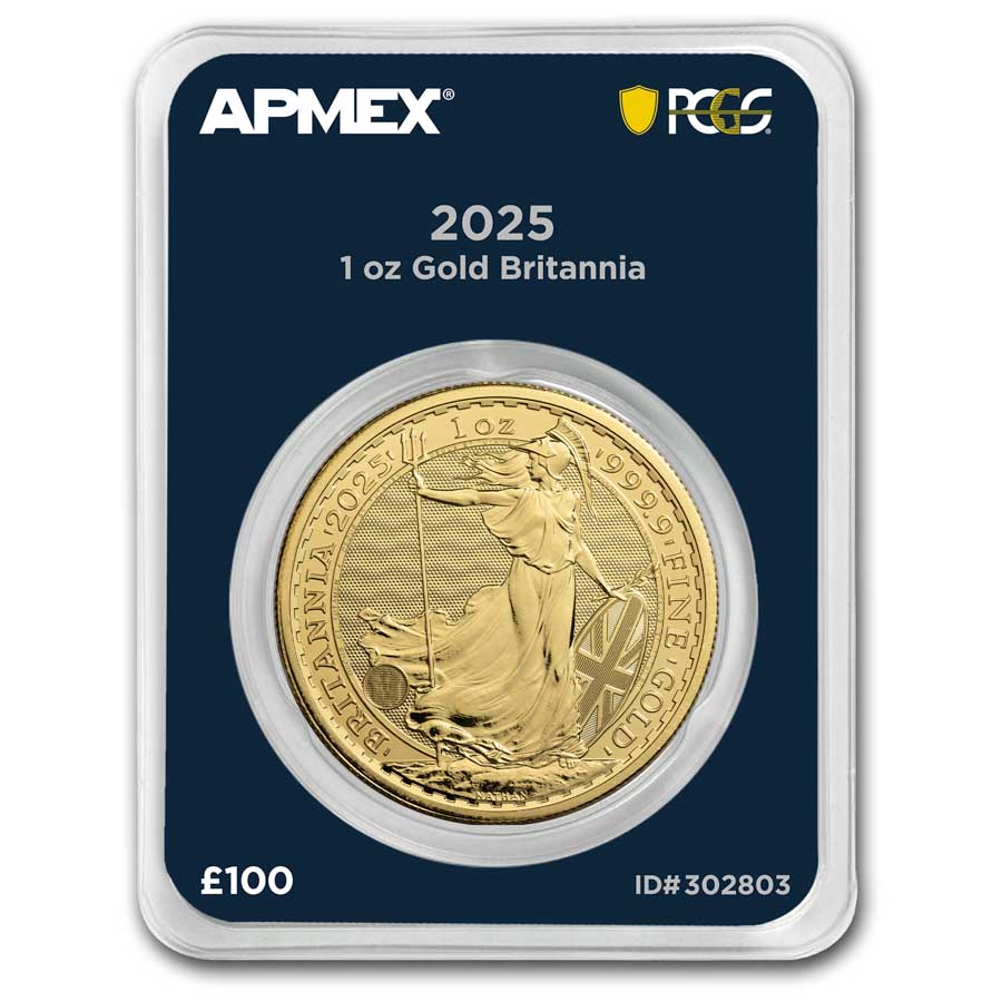 In partnership with PCGS, 2025 MintDirect® Premier Gold Britannias now have the added benefit of qualifying for the sought-after PCGS FirstStrike® designation if submitted for grading in sealed packaging, bringing additional value to this popular program. APMEX has partnered with PCGS, one of the most trusted names in numismatics, to further enhance the MintDirect® Premier program. This partnership with PCGS allows MintDirect® Premier with PCGS FirstStrike® 2025 Great Britannias in their sealed packaging to remain eligible for the FirstStrike® designation if submitted to PCGS for grading long after new FirstStrike®-eligible coins are typically off the market.
