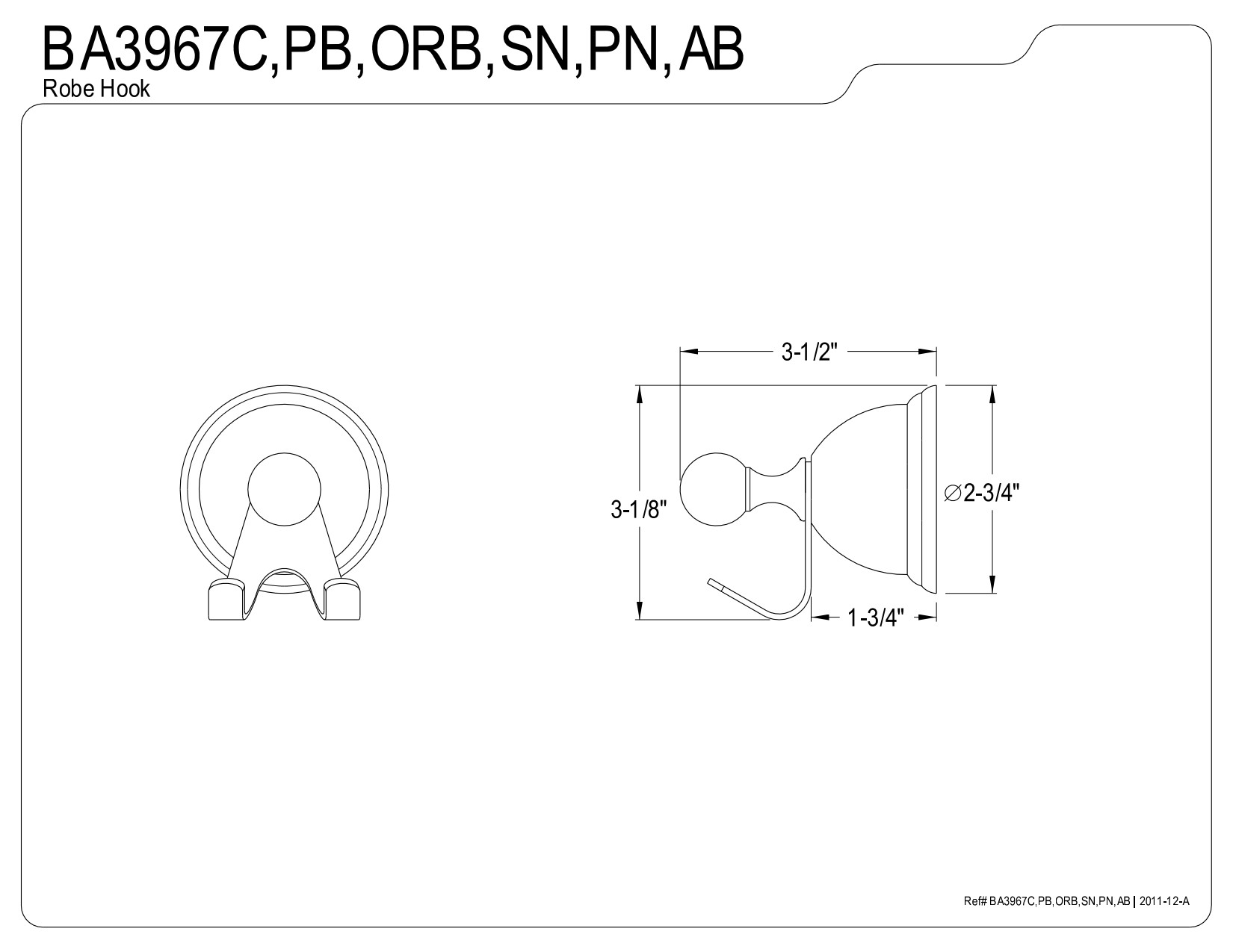 Kingston Brass BAK3967ORB Restoration Robe Hook, Oil Rubbed Bronze
