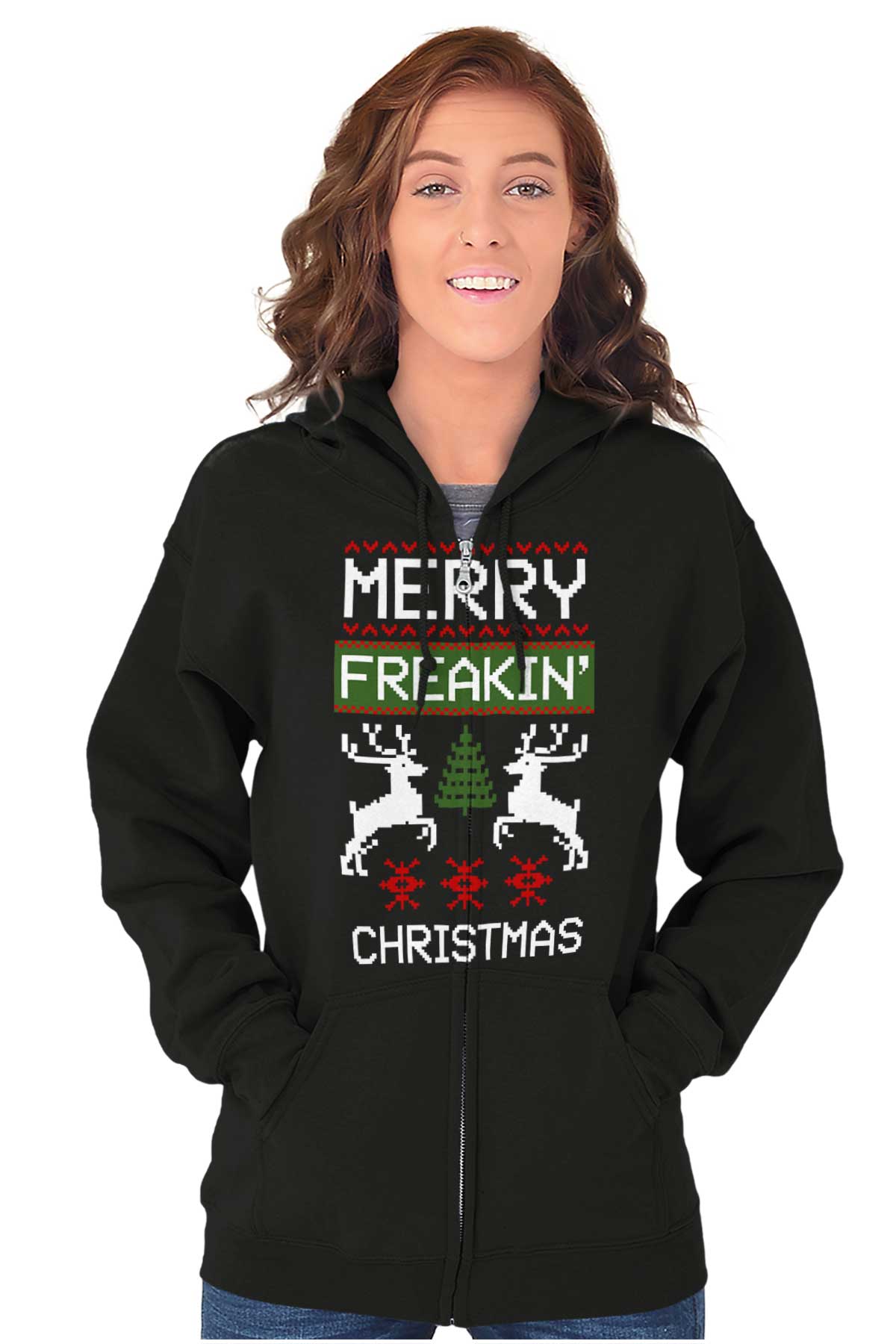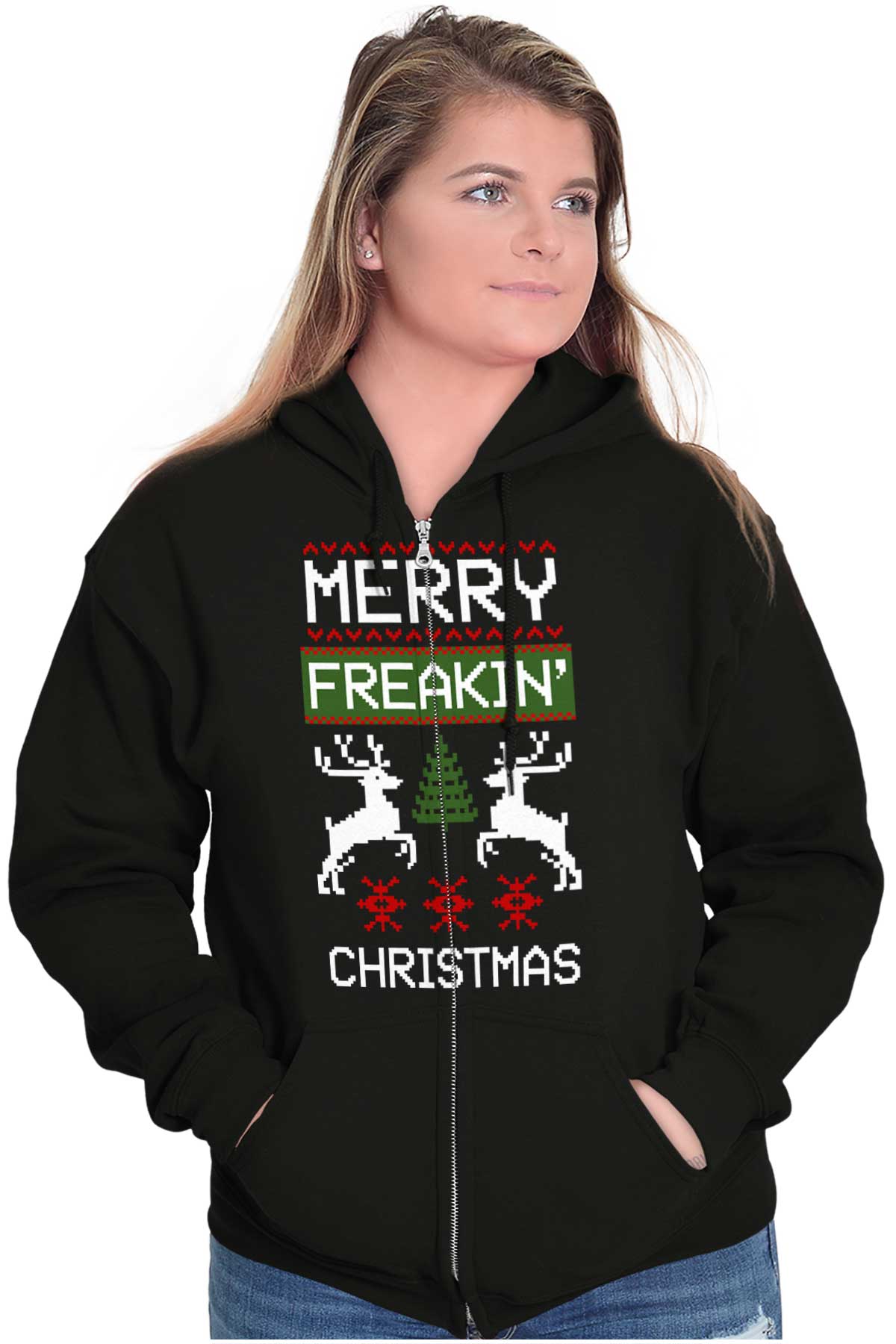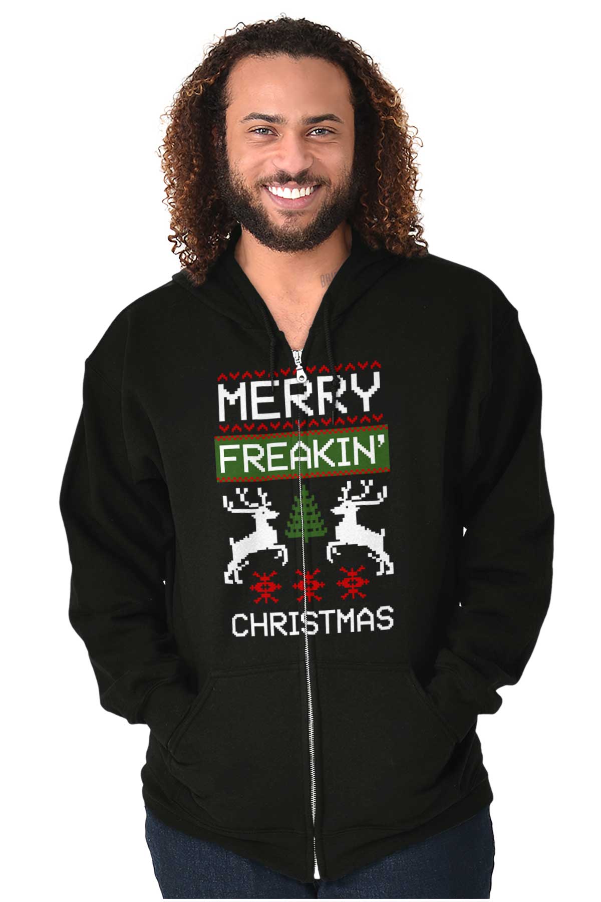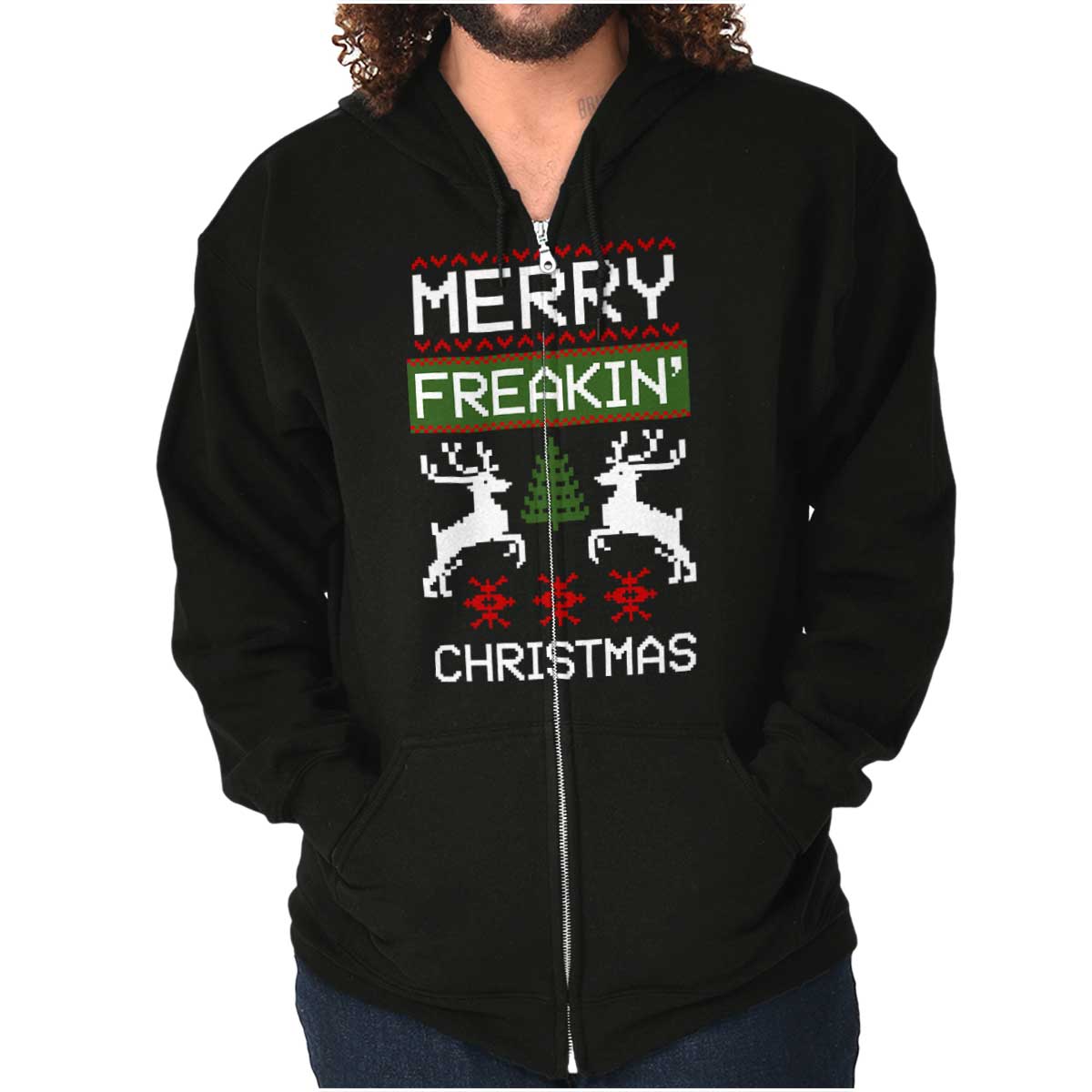 Zip up hooded sweatshirts are a must-have staple in any closet. The zip up hoodies from Brisco Brands are made with pre shrunk fleece knit for a perfect, comfortable fit. Take it on and off with ease with the metal zipper that has overlapped fabric across it for full front printing of the featured Christmas image. The unlined hood has a color matched drawstring for the perfect, cozy fit. Spacious pouch pockets on the from of the garment provide a space to carry essentials or keep your hands warm. The soft feel of this sweatshirt is perfect on chilly days whether you're outdoors or just hanging out on the couch. Wear it zippered up to stay cozy or unzipped to show off what you're wearing underneath! Reduced piling maintains the integrity of the garment as you wear it. The stylish novelty graphic makes this the perfect addition to your collection of favorite sweaters and sweatshirts! All of Brisco Brands shirts are professionally printed in the USA using contemporary technology.