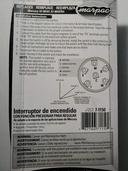 Ideal for replacing worn or broken Mercury ignition switches, this durable key switch is designed to keep your outboard motor running smoothly.