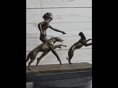 Striking Art Deco Bronze Sculpture of a Nude Woman with Two Dogs by M. Bourane