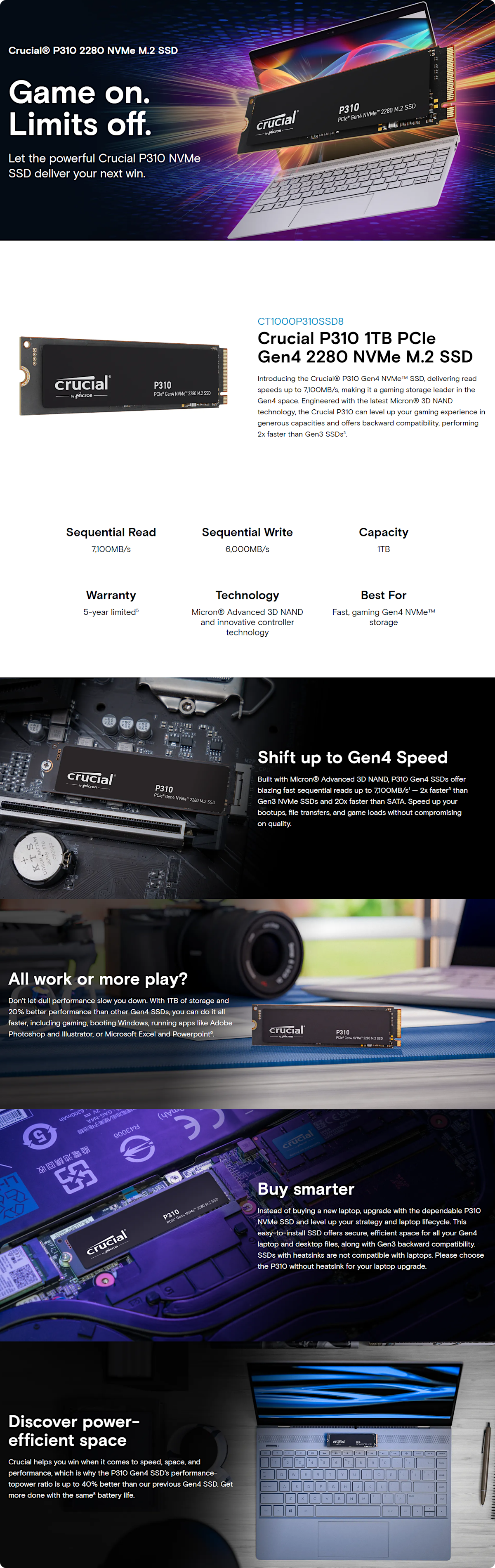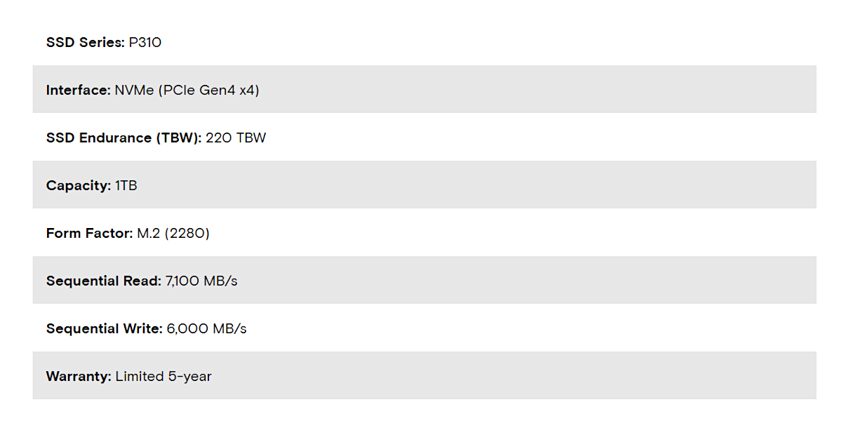 Crucial P310 1TB 7100MB/s PCIe Gen 4 NVMe M.2 (2280) SSD