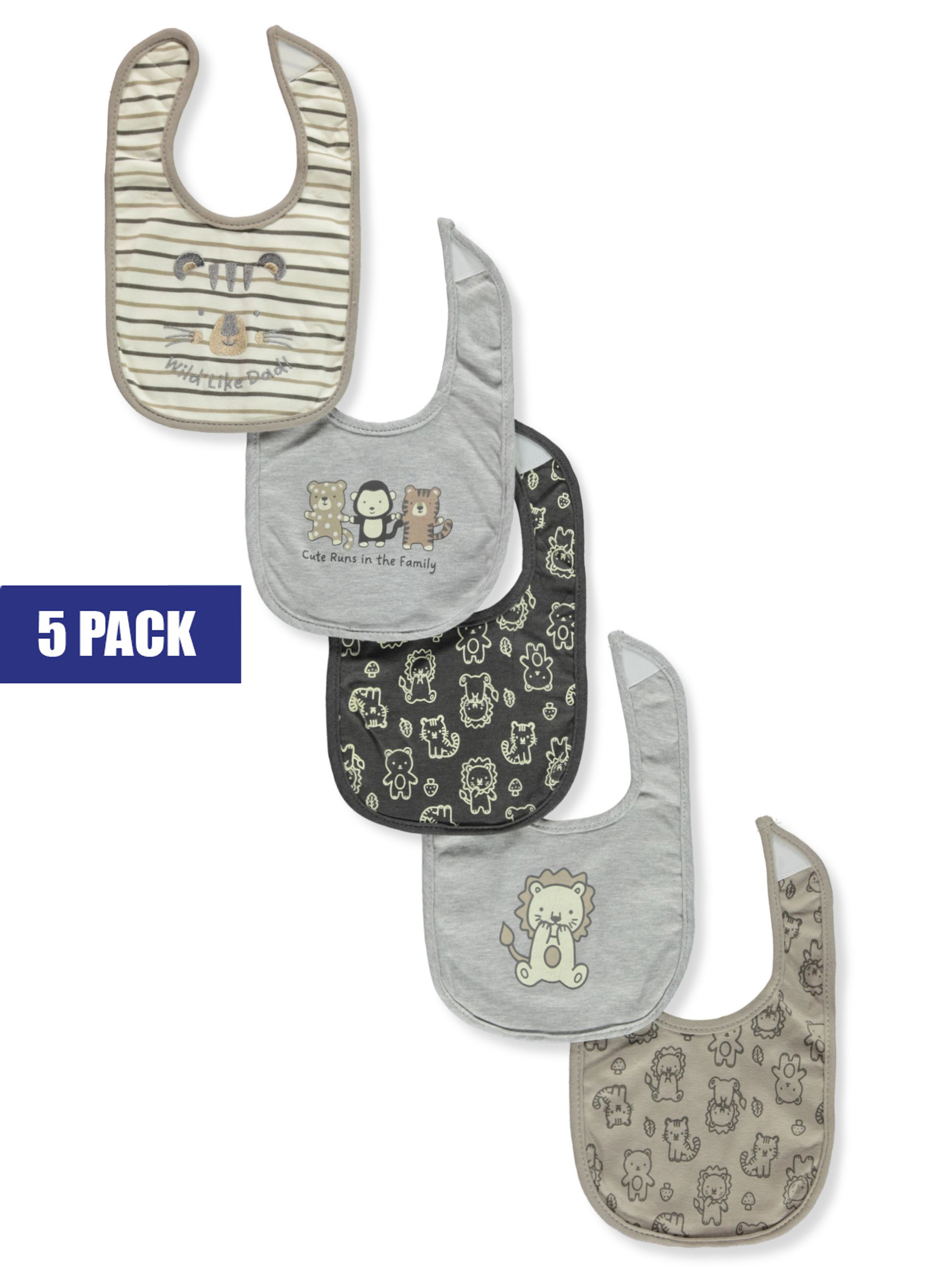 Millie & Miles Baby Boys' 5-Pack Bibs - gray/multi, one size