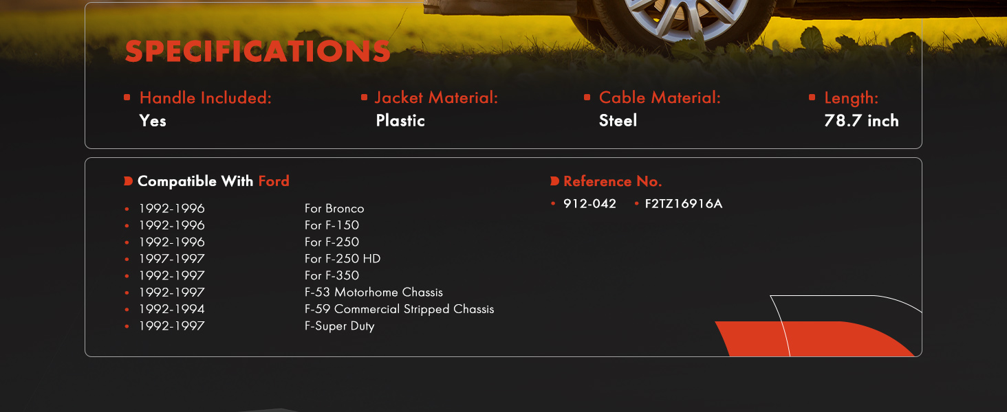Hood Release Cable for Ford F-150/250 92-96 F350 F-53 Motorhome Chassis 92-97