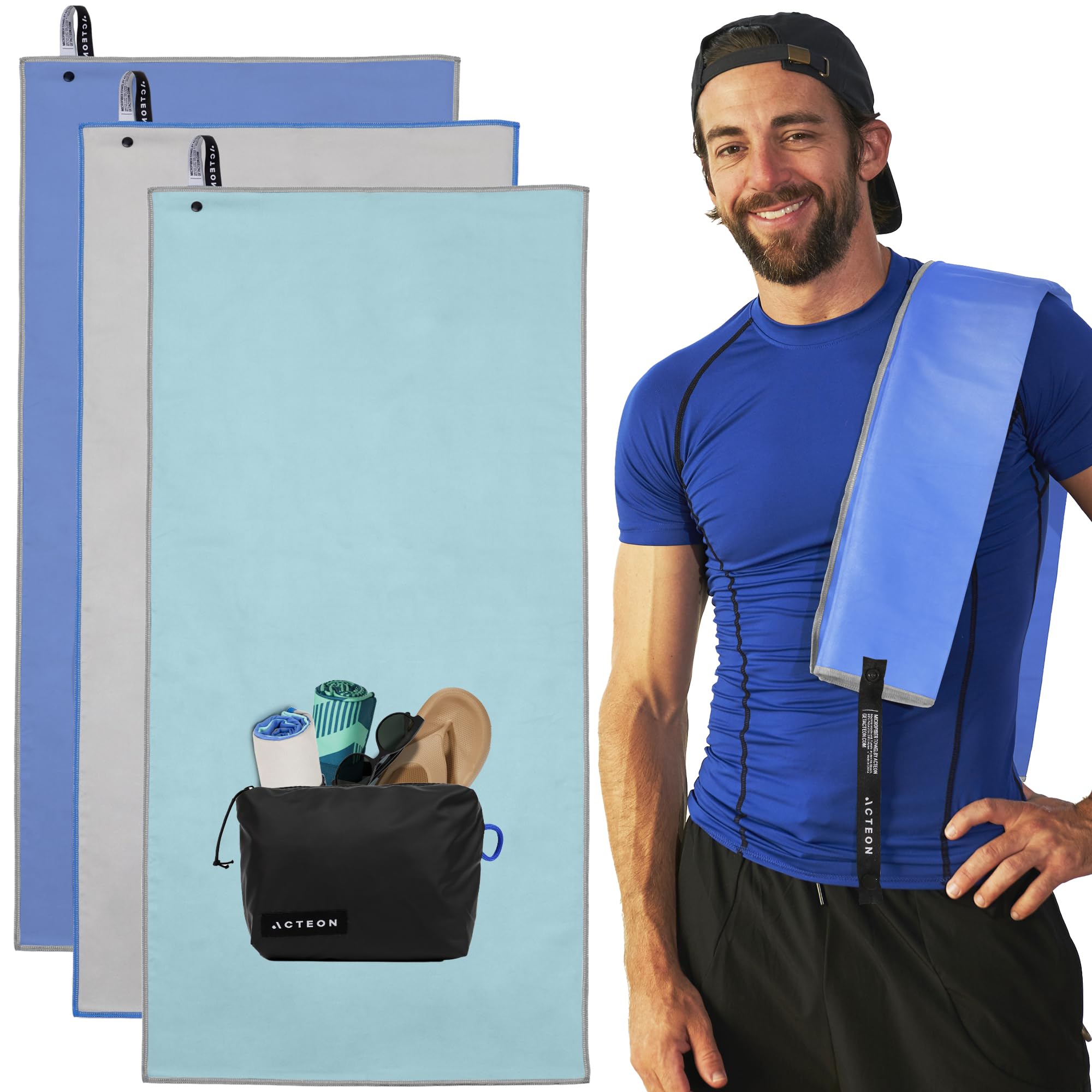DURABLE MICROFIBER GYM TOWEL: 's thin towel will also easily hang over your neck or shoulder for the optimal workout and drying experience. your wet clothes or dry items when travelling to keep your gear dry and protected.