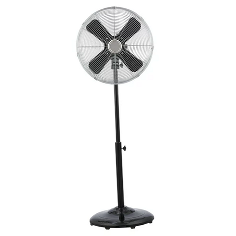 The Better Homes & Gardens 16 inch Retro 3-Speed Metal Pedestal Fan is designed to provide the perfect amount of air flow for a room, producing up to 2080 CFM. This retro fan offers three speeds and oscillates, allowing for full air-flow coverage. The fan has a sturdy, weighted base to prevent tip overs and has an adjustable height from 39.2" to 49.4".