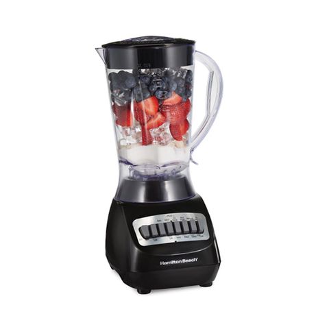 The Hamilton Beach® Smoothie Blender delivers ultra-smooth results every time you blend. Its patented Wave~Action® System continuously forces ingredients down into the blades and circulates them around the jar — thoroughly crushing the hardest contents with ease. With 650 watts of peak blending power and stainless steel Ice Sabre® blades, you'll have all the power you need to blend smoothies, protein shakes, frozen drinks and more. Serving is easy because the convenient pour spout on the jar eliminates messy drips. The large BPA-free 56 oz. blending jar holds multiple servings and the removable filler-cap on the lid makes it easy to add ingredients to the jar as you blend.