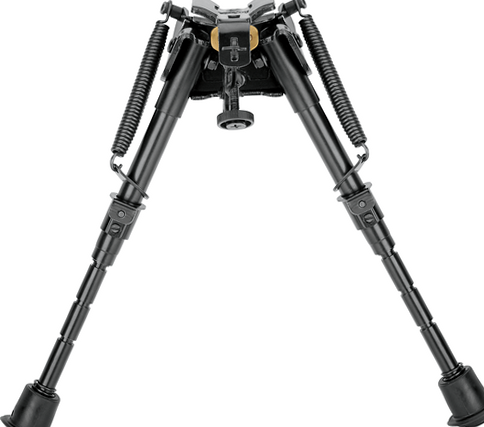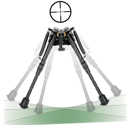 The Caldwell XLA bipod provides a stable shooting support that conveniently attaches to almost any firearm with a sling swivel stud. The lightweight aluminum design adds minimal weight and deploys quickly, with legs that instantly spring out to the shooting position with the touch of a button. The lower portion of the bipod pivots independently from the upper stock mount, allowing the firearm to be quickly levelled on uneven ground. The legs are notched for easy indexing to a specific height, and there's a connection point for sling attachment and multi-section legs that collapse forward for convenient carrying. Soft rubber feet provide enhanced stability, while the padded bipod base protects the firearm's forend. The tension knob can be adjusted to control the resistance of the pivoting motion.