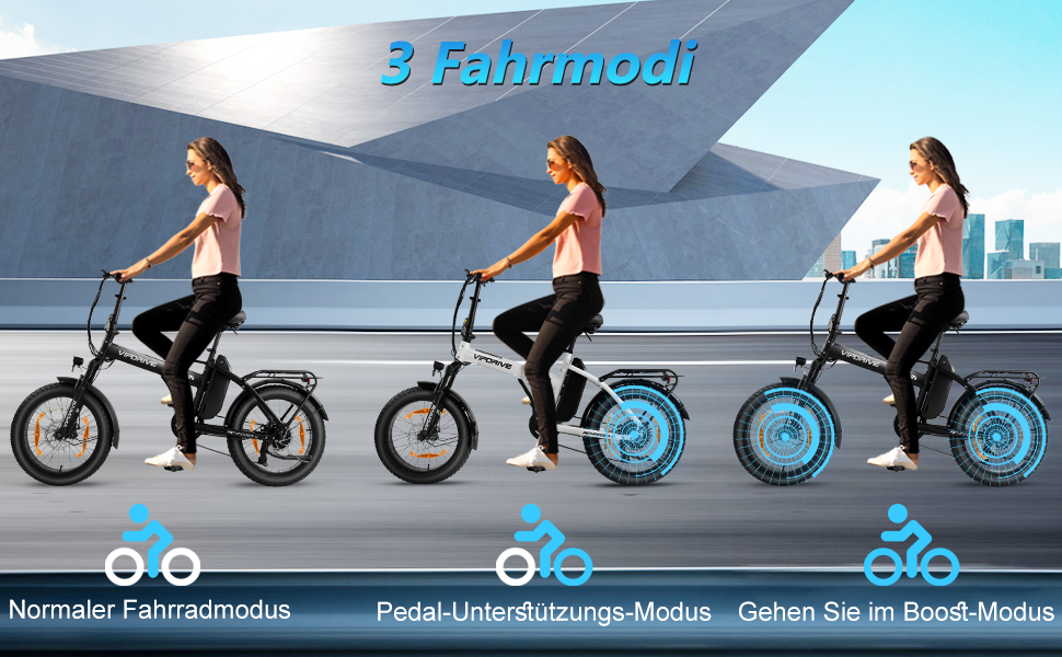 【3 Fahrmodi】:Das Fahrrad verfügt über 5 PAS-Stufen und 3 Fahrmodi ("Pedal Assist Mode", "Classic Mode" und "Walk Assist Mode"). Sie können den "Pedal Assist"-Modus verwenden, um Ihr Ziel schnell zu erreichen, den "Classic"-Modus, um wie ein normales Fahrrad zu fahren, oder den "Walk Assist"-Modus, um die Stadtlandschaft zu genießen, während Sie langsam fahren.