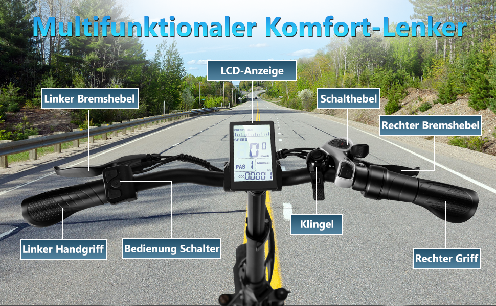 【Elektrofahrrad Montage】 Das Fahrrad ist zu 85% vor der Ankunft vormontiert, Sie müssen nur den restlichen Teil der Montage beenden, das Paket wird das Werkzeugset und die Bedienungsanleitung enthalten, (Inzwischen gibt es ein Installationsvideo auf unserer Produktseite als Referenz).