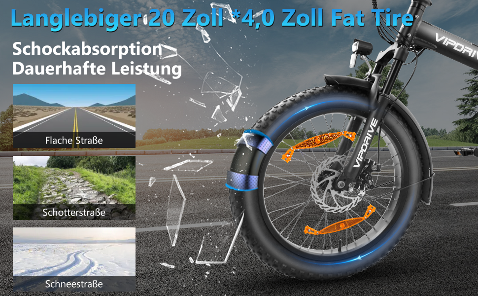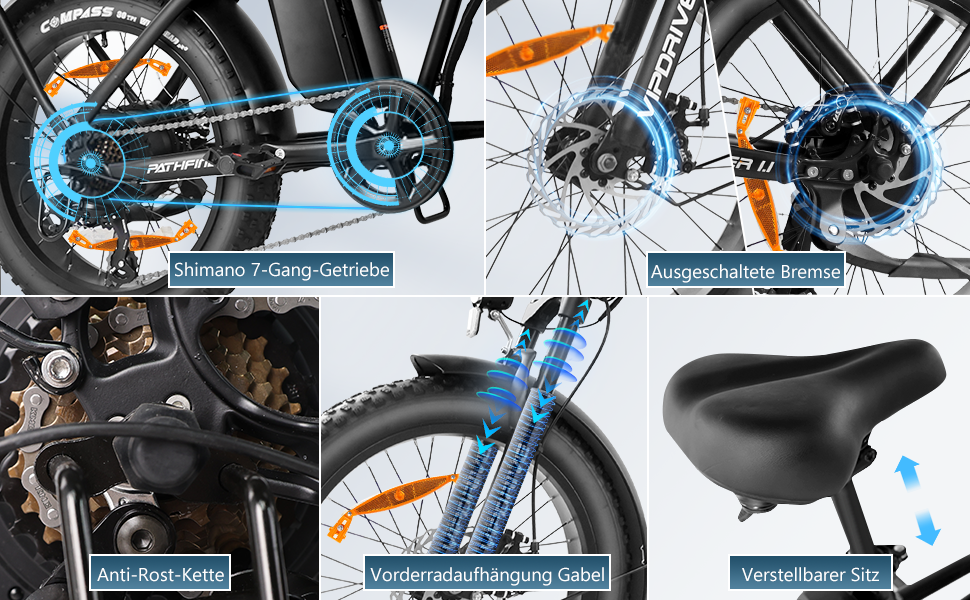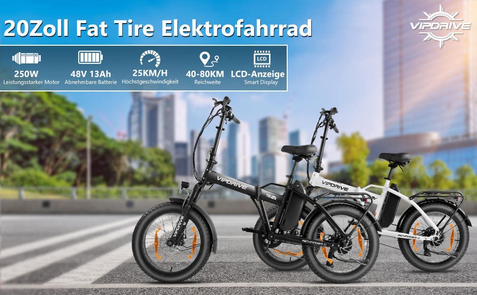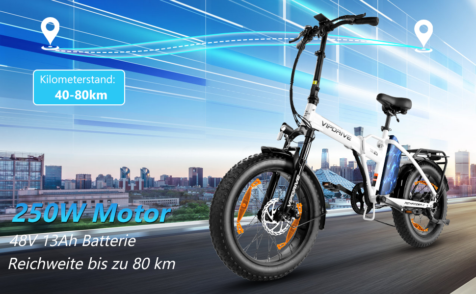 【Leistungsstarker Bürstenloser Motor】Vipdrive Pathfinder Elektrofahrrad nimmt einen leistungsstarken 250W bürstenlosen Motor und eine Höchstgeschwindigkeit von bis zu 25?km/h, das Drehmoment von 65Nm bietet genug Steigleistung, um Steigungen von 30° zu überwinden, Es kann leicht alle Terrains durchqueren.
