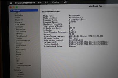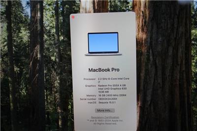 Apple 15" MacBook Pro 2018 2.2GHz Core i7 256GB SSD 16GB A1990 MR932LL/A