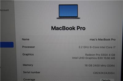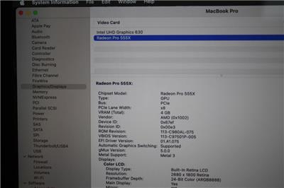 Graphics Card: 1.5 GB Intel UHD Graphics 630, 4 GB Radeon Pro 555X