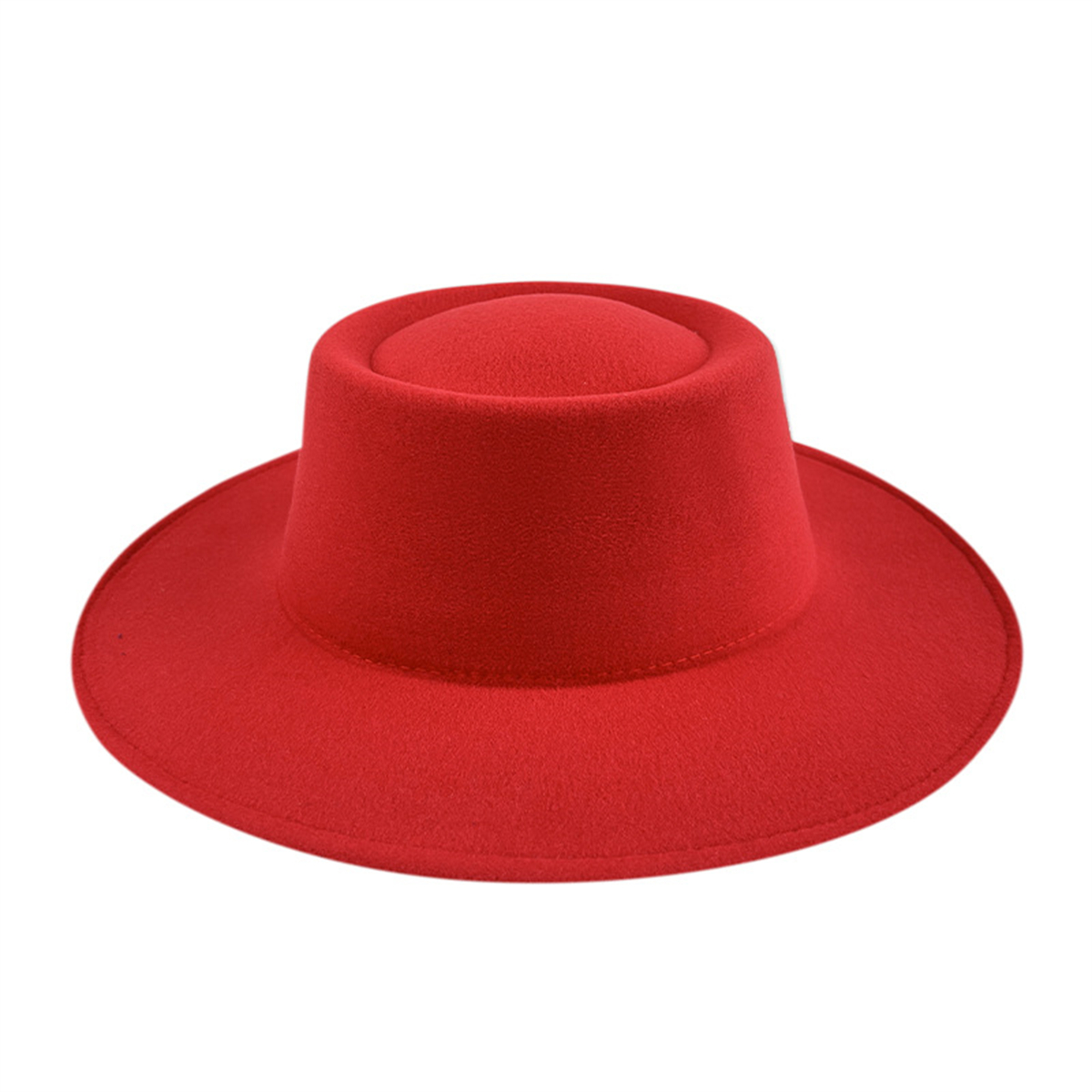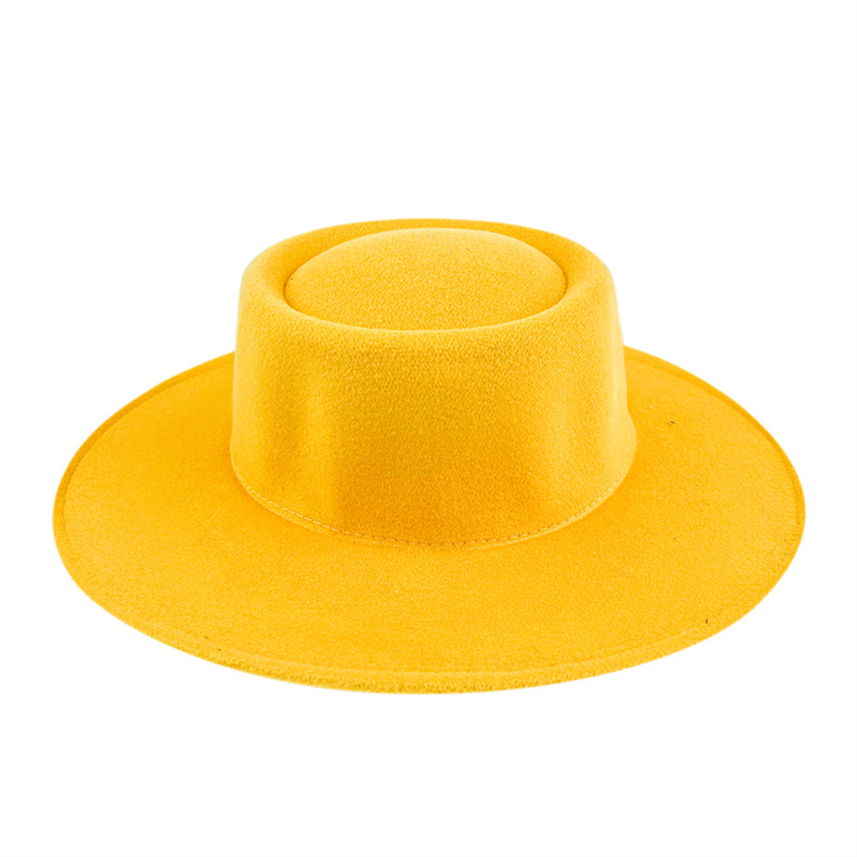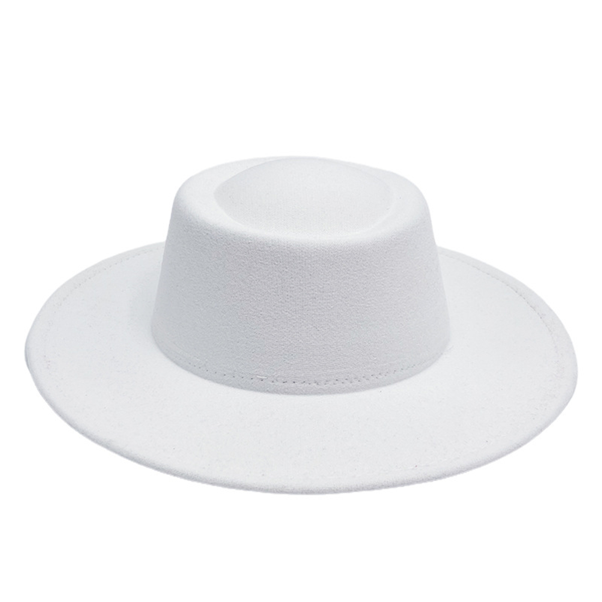 Men Women Elegant Large Wide Brim Felt Flat Top Hat Panama Church Derby Top Hat