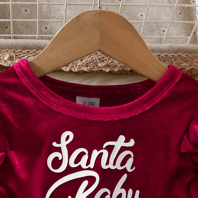 A Christmas red velvet dress jumpsuit and a santa hat for baby girls, perfectly fit Xmas and New Year parties.
