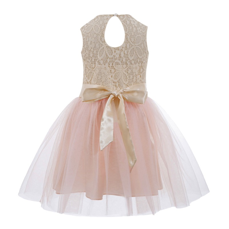 The dress features with sleeveless and round neckline, lace decorated in upper part, hole hollow back, invisible zipper in one side.