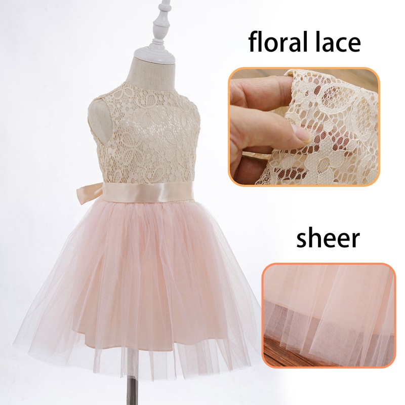 Two layers tutu mesh in outside, a layer satin cloth as a lining, waist belt can be tied at the back, match with big flower headband.