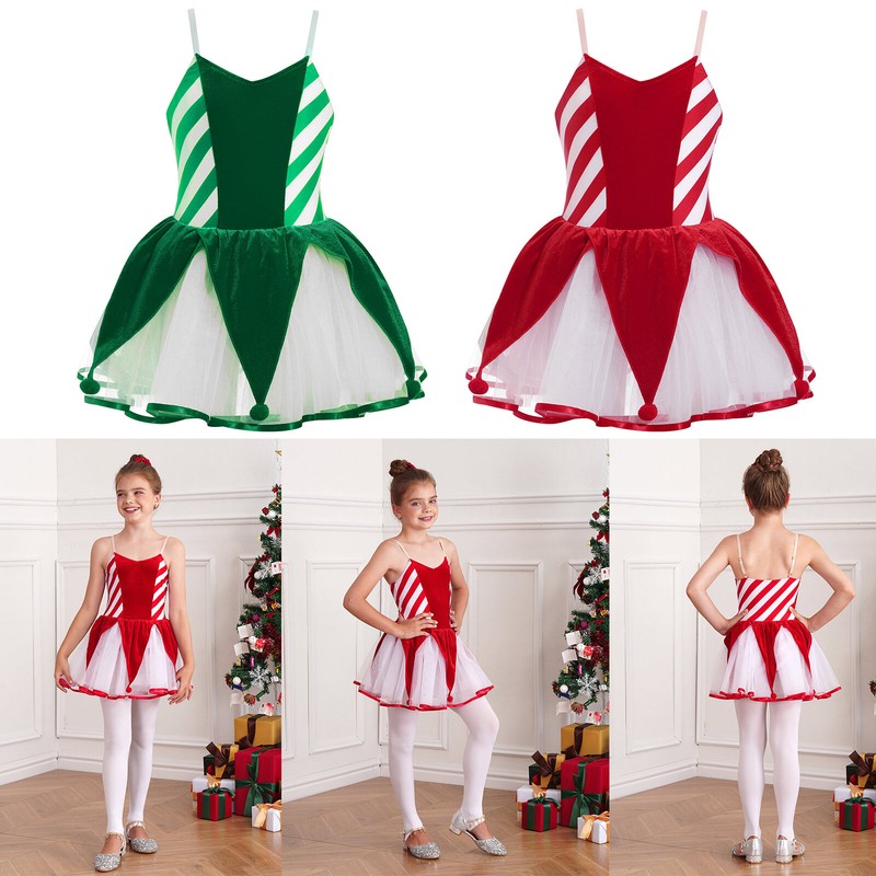 Christmas dress costume for girls, with adjustable straps and stripes print design.