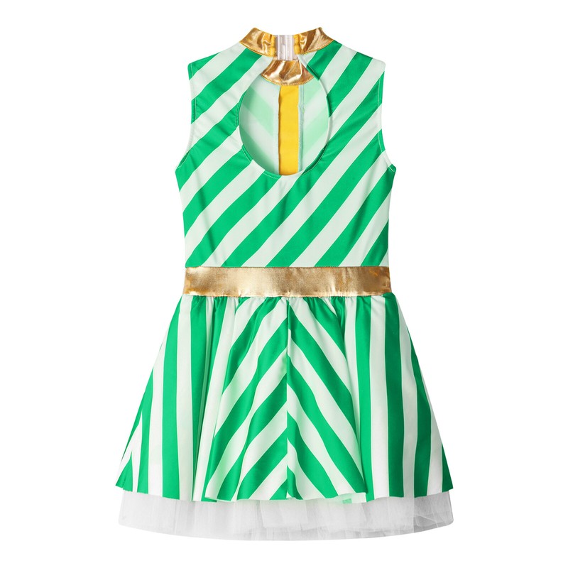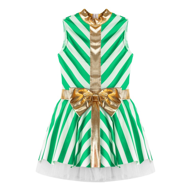 Stripes printed candy cane tutu dress adds Christmas festival atmosphere to kids.