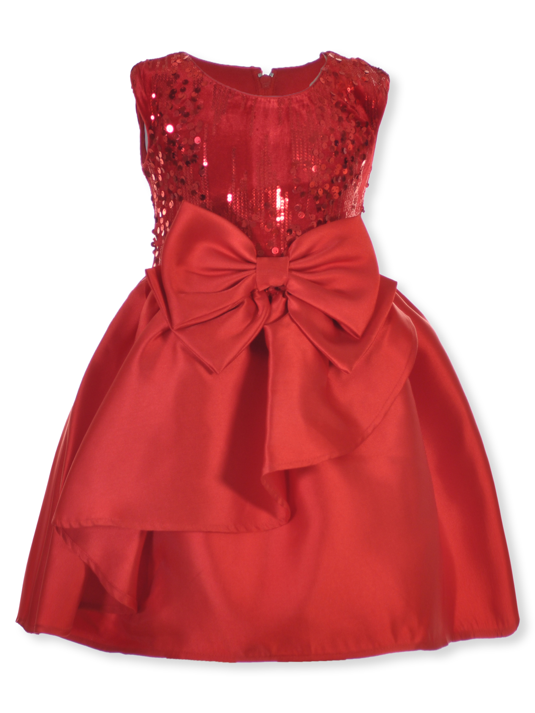 Bonnie Jean Girls' Rose Bow Dress - red, 5