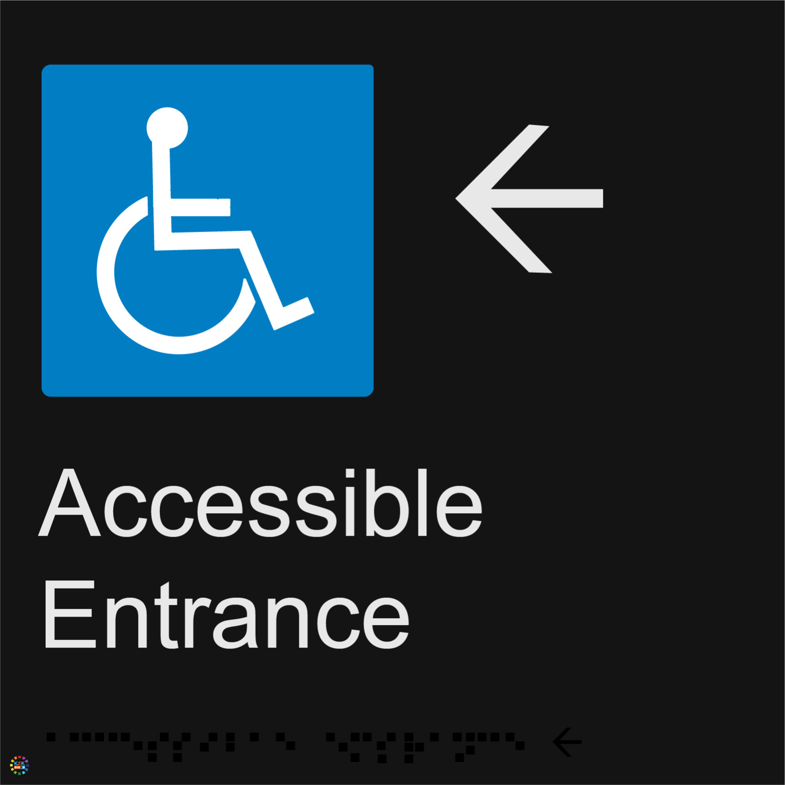 Enhance accessibility and clear navigation with the Accessible Entrance (Left) Braille and Tactile Sign (BR30), designed to guide individuals toward compliant entry points in public buildings, workplaces, and commercial facilities. Created for universal access, this sign supports people with low vision through raised tactile text, Grade 1 Braille, and a left-pointing symbol that ensures clarity when identifying accessible pathways. Suitable for offices, schools, hospitals, retail centres, transport hubs, and all locations requiring reliable accessibility communication, it assists in meeting mandatory building requirements while promoting safe and inclusive movement throughout your premises. Manufactured from durable 3mm-thick PVC, it is available in silver background with black text or black background with white text and provides long-lasting performance in both indoor and outdoor settings. Weather-resistant, vandal-resistant, and supplied with strong double-sided tape, it allows fast installation while maintaining dependable adhesion on clean, smooth surfaces. Fully compliant with BCA/NCC Part D4D7, Specification 15, and AS1428.1-2009, this tactile sign supports consistent accessibility standards and dependable wayfinding in any environment.ROBUST BUILD QUALITY: Produced from 3mm thick PVC using an injection moulded one-piece construction that greatly enhances hygiene, prevents dirt accumulation, resists cracking or delamination, and withstands frequent contact in high-traffic public environments subjected to regular cleaningAVAILABLE FINISHES: Select between a silver background with bold black text for a clean, modern presentation or a black background with high-contrast white text designed to enhance readability for low-vision users while maintaining a professional appearance suitable for all building typesSTANDARDISED SIZE: Manufactured in a practical 210mm x 180mm format that provides clear tactile characters, appropriately spaced Braille dots, and an intuitive layout that aligns with accessibility guidelines while remaining compact enough for doorways, walls, and entry structures without overwhelming the surrounding areaRELIABLE PERFORMANCE: Built to be weather-resistant and vandal-resistant to ensure long-term clarity and functionality, whether installed indoors in busy corridors or outdoors in exposed entryways where moisture, sunlight, and physical contact may affect typical signageEASY FIXING METHOD: Comes with strong double-sided tape that allows rapid installation on smooth, clean surfaces without specialised tools, providing secure adhesion ideal for facilities requiring immediate compliance upgrades or straightforward placement on doors, walls, and access points
